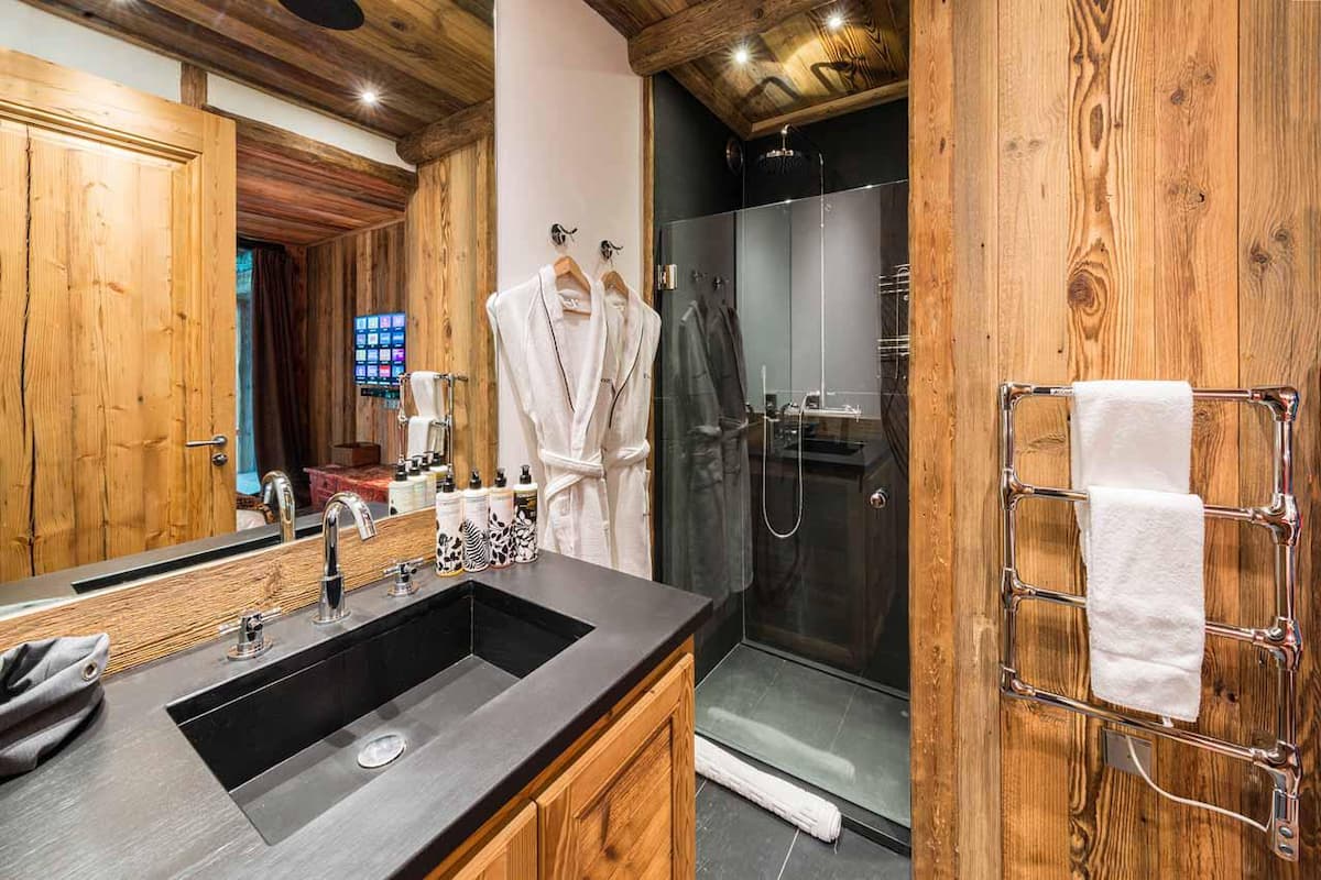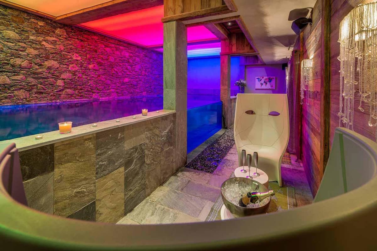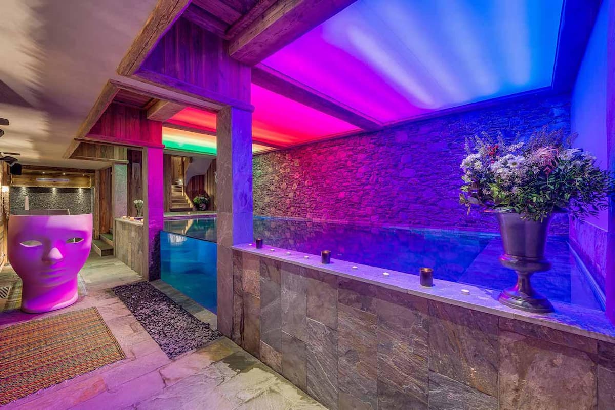 Families will love the wide range of activities available at Chalet Katmai, particularly the impressive indoor climbing wall and dedicated areas for archery and rifle shooting. Modern amenities include an Apple TV and a Bluetooth soundbar. For ultimate relaxation, the wellness area features a large indoor swimming pool with a waterfall, a hot tub, a hammam, a massage room, and a fully-equipped fitness room.