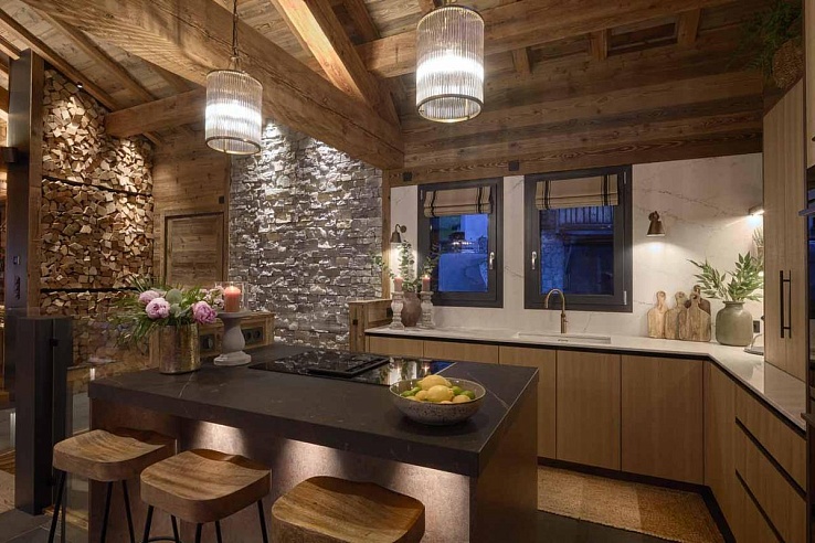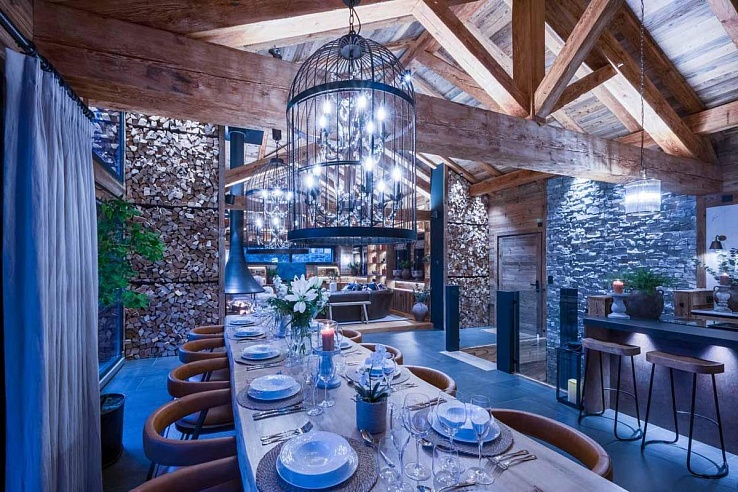 Beyond the slopes, wellness takes centre stage. Plunge into the heated infinity pool against a current, soak tired muscles in the Jacuzzi, or detox in the wooden sauna—all while drinking in the panorama of the Roc d'Enfer. Evenings are for gathering: mix Negronis at the glamorous bar, challenge the group to a film in the private cinema, or gather around the fire pit on the terrace, toasting marshmallows under a blanket of stars.
