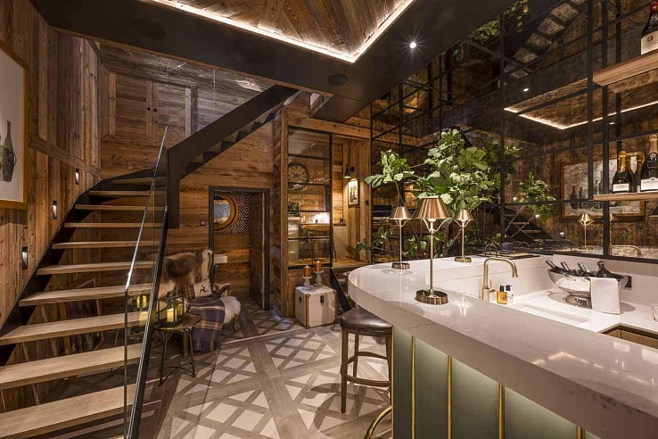 The soul of the chalet lies in its seamless indoor-outdoor flow. A showpiece terrace features an infinity pool with a counter-current system, a bubbling hot tub, and a fully equipped outdoor kitchen centred around a fire pit—all leading directly to an internal sauna for the ultimate thermal journey. Interiors are a masterclass in contemporary cosiness, with floor-to-ceiling glass framing the peaks, a grandiose wood-burning stove, and a cocktail bar that rivals a city-centre lounge.