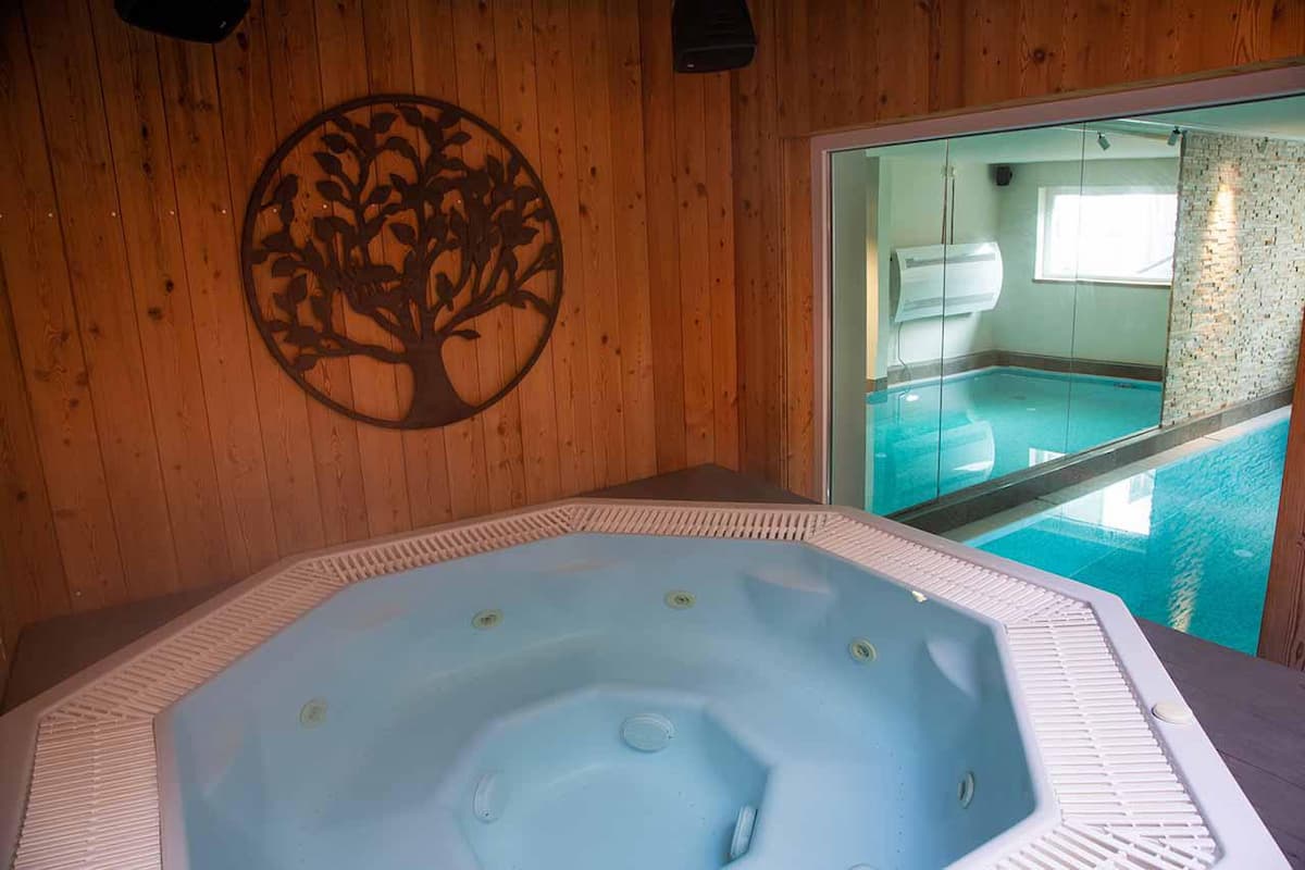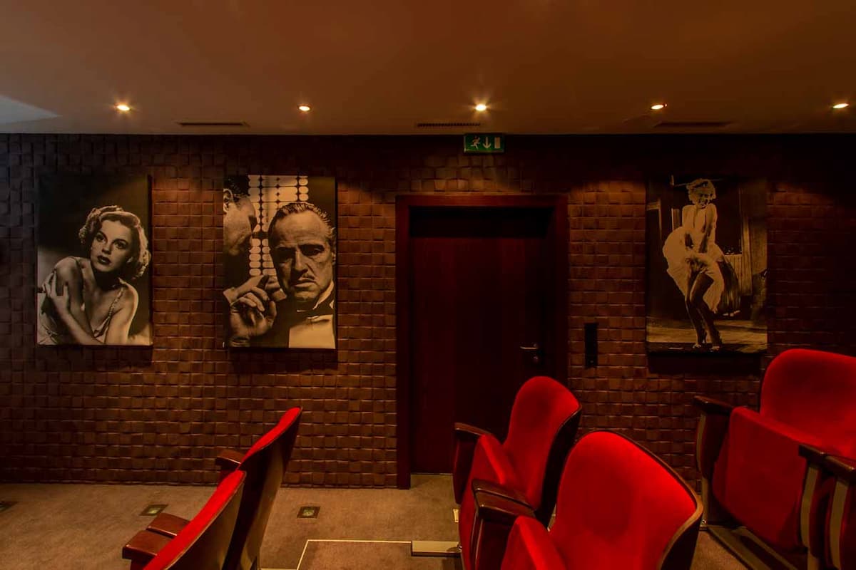 The lower ground floor is a dedicated temple to relaxation, centered around an impressive 8-meter indoor pool with a powerful jet stream. Adjacent, the indoor-outdoor hot tub, illuminated by a celestial-themed ceiling and a Sonos sound system, offers year-round indulgence. Post-ski, soothe muscles in the Swedish sauna or eucalyptus-infused steam room before retiring to the private treatment room for a bespoke massage. For entertainment, the separate cinema room, with its tiered red velvet seating, popcorn machine, and high-end audio-visual equipment, is perfect for film nights, sporting events, or even corporate presentations.