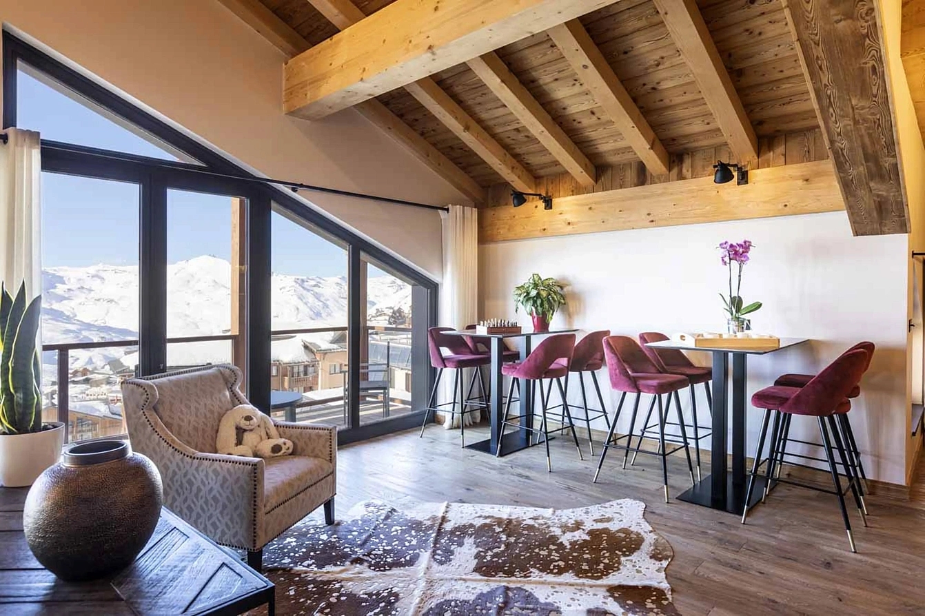 Privileged ski-in/ski-out position at the top of Val Thorens, adjacent to the 5* Hotel Koh-I Nor. Just 150m from the slopes and ski lifts, and a 10-minute walk to the resort centre.