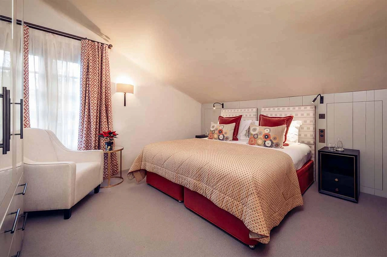 1 x Master bedroom with super-king, private sitting room, study, fireplace, balcony and with en suite bathroom with separate shower