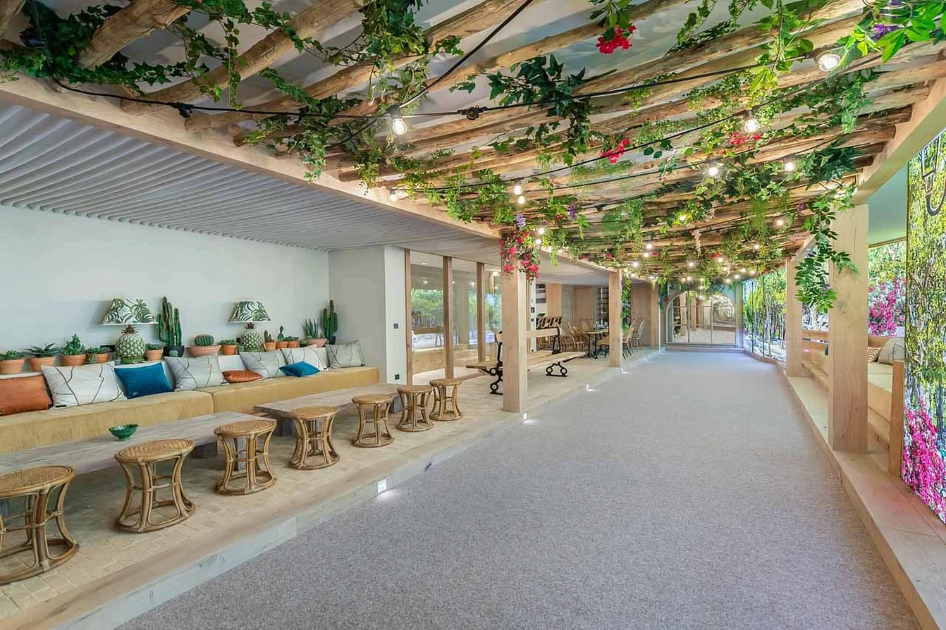 Prepare for a sensory journey in the exceptional wellness area. Centered around an indoor-outdoor swimming pool bordered by an authentic white sand beach and imagery of Pampelonne, this space evokes the Mediterranean. It is complemented by a sauna, hammam, gym, and massage room.