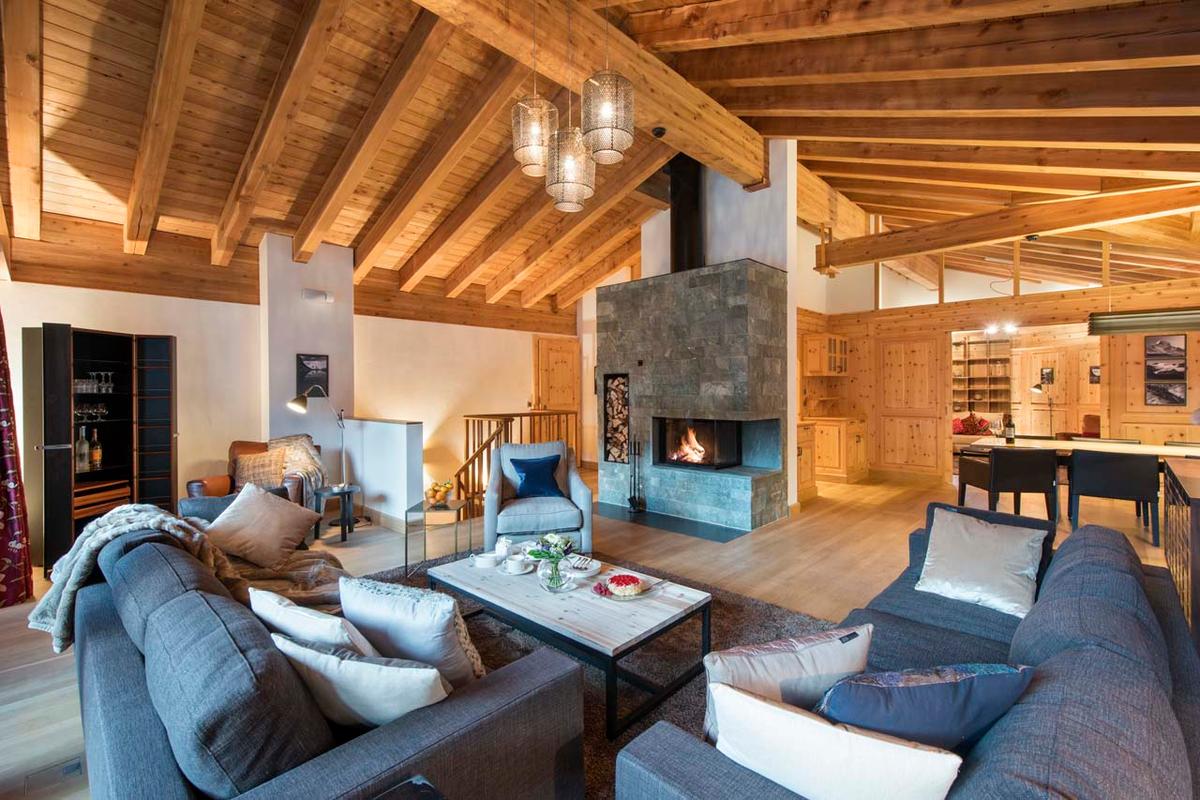 The opulent duplex apartment, Alex, occupies the top two floors of Chalet Shalimar in Zermatt. Designed to accommodate 12 guests across six generously sized twin/double bedrooms, this residence is ideal for large gatherings of friends or families.