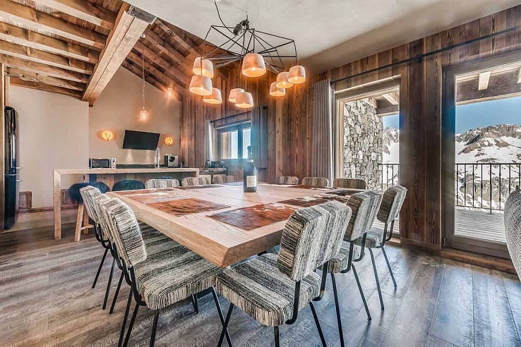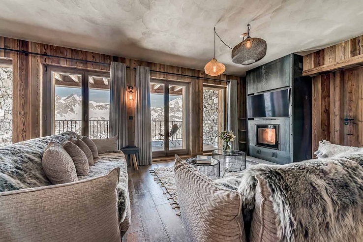 Exuding charm with its blend of exposed stone, rustic wood, atmospheric lighting, and cozy wood chip fires, Val-346effortlessly combines style and warmth. Spanning two floors, the apartment features an open-plan living area with plush sofas, a dining table overlooking the majestic peaks, and a fully equipped kitchen. Multiple balconies provide unparalleled views of the resort and surrounding landscapes.