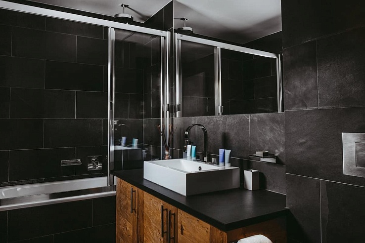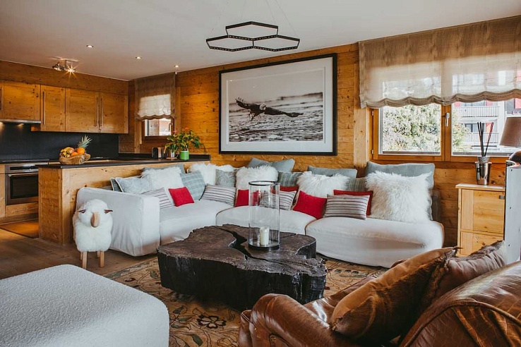 This single-level apartment comfortably hosts up to seven guests across four bedrooms. The open-plan living and dining area provides ample space for relaxation after a day exploring Verbier. Enjoy a drink by the open fireplace or dine at the elegant table. The fully equipped kitchen is separated from the dining area by a stylish breakfast bar.