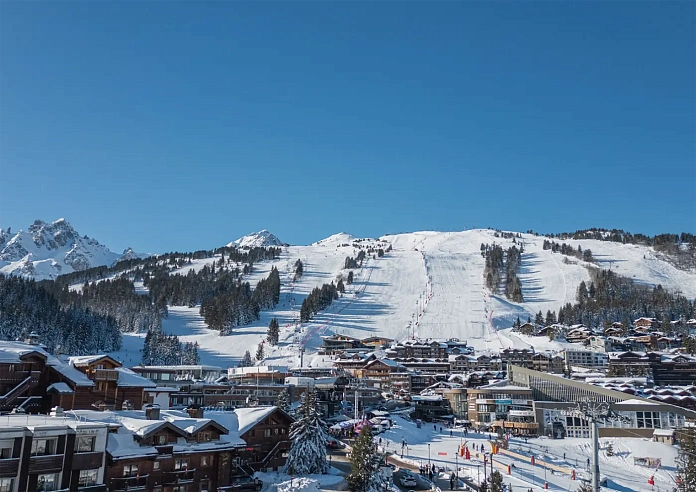 In the heart of Courchevel 1850, moments from luxury boutiques and gourmet dining. The main lift hub at La Croisette and ski school meeting point are just a three-minute walk.