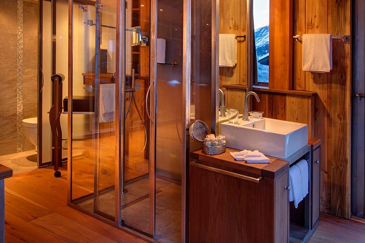 Spread across the first and second floors, the chalet's five double bedrooms exude comfort and sophistication. Notably, one bedroom boasts a charming loft mezzanine, perfect for younger guests. Each room is complemented by modern en-suite facilities, entertainment systems, and private balconies, ensuring a harmonious blend of luxury and relaxation.