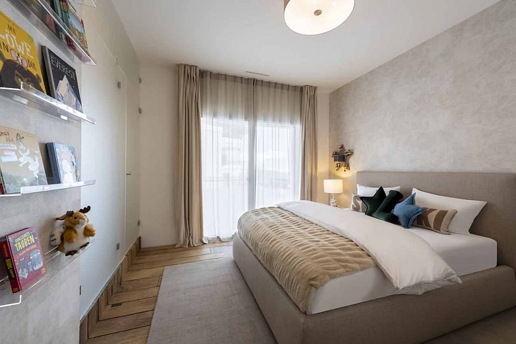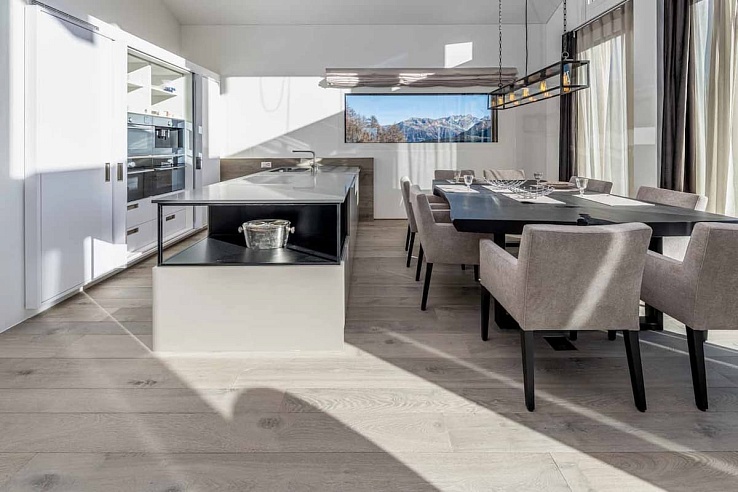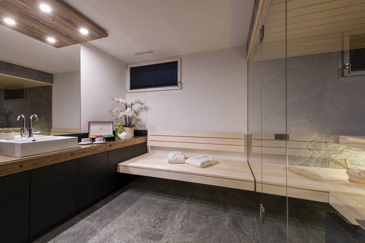 Retreat to 6-7 bedrooms per chalet, where tactile linens, walk-in wardrobes, and en-suite marble baths cocoon guests in serenity. Jakobshorn’s master suite stuns with a freestanding tub overlooking the valley, while Seehorn’s flexible layout includes a twin room perfect for younger adventurers. Buelenhorn elevates privacy with its self-contained studio apartment and bedrooms featuring en-suite rain showers—each space harmonizing alpine warmth with minimalist elegance.