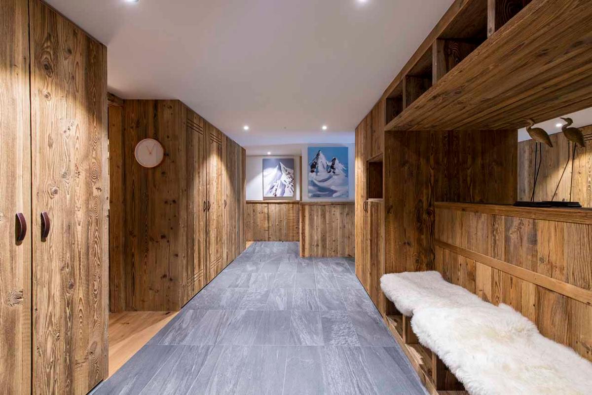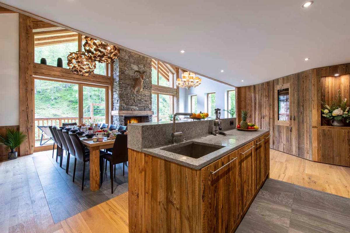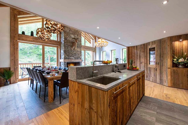 Post-adventure, Val-436 excels in relaxation and entertainment. Soothe weary muscles under a canopy of stars in the inviting outdoor hot tub on the terrace, steam rising into the crisp mountain air. Gather in the dedicated cinema room, the perfect spot to enjoy a film night after a day conquering the Espace Killy. Cosy up by the roaring stone fireplace in the luminous living area, cocktail in hand, or lose yourself in a book from the chalet's library. The seamless flow between the lounge, dining, and kitchen areas fosters effortless socialising.