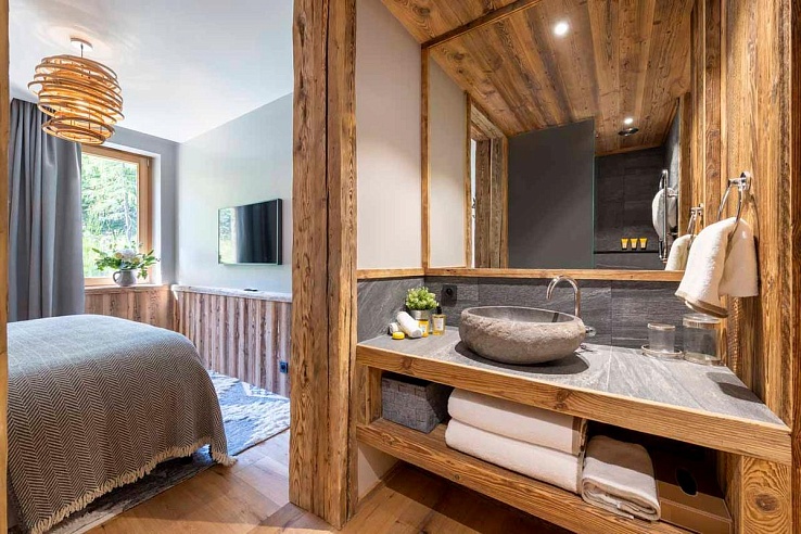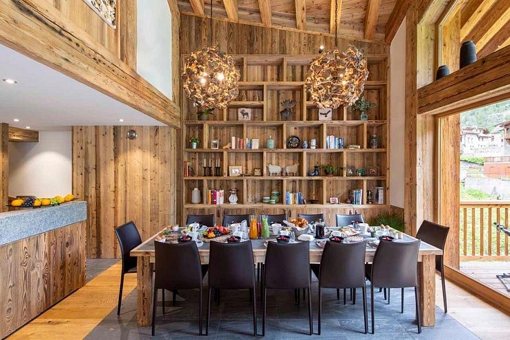 Experience authentic Alpine luxury across four meticulously designed floors. Val-436 welcomes up to 12 guests within its five beautifully appointed bedrooms. Ascend to the first floor and be enveloped by the stunning cathedral-ceilinged living space. Here, an impressive floor-to-ceiling stone fireplace anchors a sumptuous lounge area, flowing seamlessly into a sophisticated dining zone comfortably seating twelve. Expansive south and west-facing windows bathe the room in light, framing breathtaking panoramas of snow-laden forests, La Face de Bellevarde, and the valley beyond. Step onto the terrace to fully immerse in the mountain air. A well-equipped kitchen completes this heart of the home, ideal for convivial gatherings. Traditional woodwork harmonises with modern comforts and plush furnishings throughout.