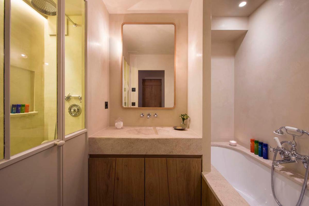 2 double bedrooms with shared bathrooms with separate showers and shared terrace access.