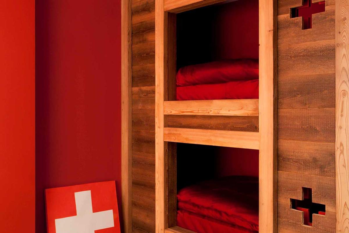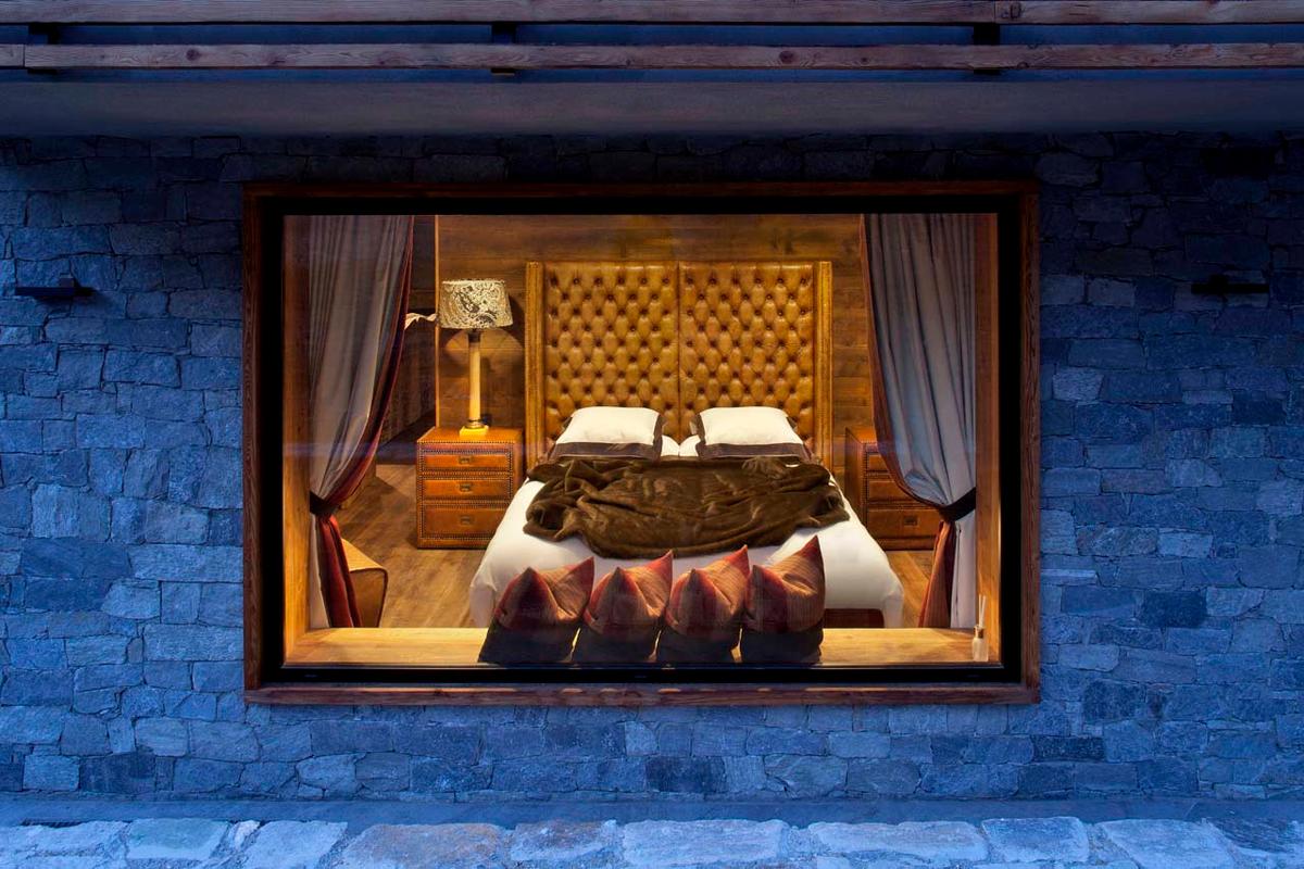 Six meticulously appointed bedrooms ensure restful repose for up to 14 guests. Five luminous double suites, each graced with Carrera marble en-suite bathrooms and private balconies or terraces framing the majestic mountain panorama, occupy the upper level, offering privacy and equal grandeur. No room is secondary; each corner suite captures unique, awe-inspiring vistas. Tucked away on the lower level, a dedicated children’s haven features a playful quad bunk room with its own en-suite, conveniently adjoining the cozy cinema snug – perfect for younger guests to claim their own space.