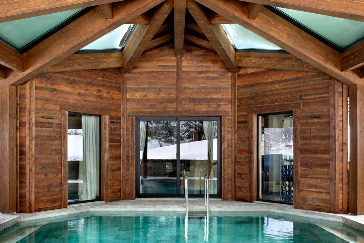 Wellness is paramount at Cham320. The pièce de résistance is the sublime indoor swimming pool, its floor-to-ceiling glass walls dissolving boundaries with the alpine landscape. Hydro-massage jets soothe weary muscles, while the innovative design allows the glass wall to retract, transforming it into an exhilarating indoor/outdoor experience. Descend to the dedicated lower-level spa sanctuary: a serene zone housing a fragrant cedar sauna and an invigorating steam room, separated by a refreshing shower. An adjacent, well-equipped gym with Sonos sound system caters to fitness routines. After slopeside adventures, unwind in the plush home cinema or savor apres-ski libations at the chalet's inviting bar.