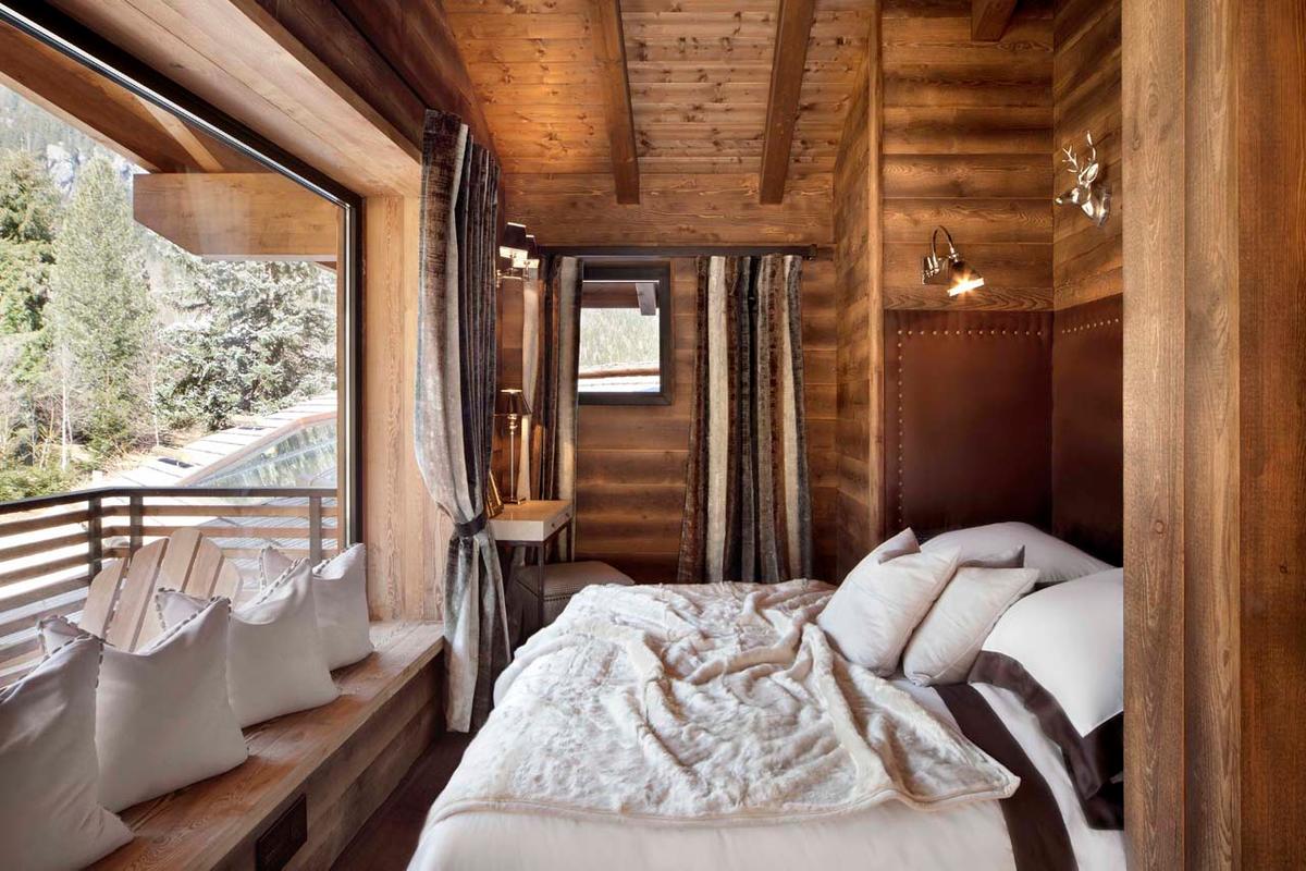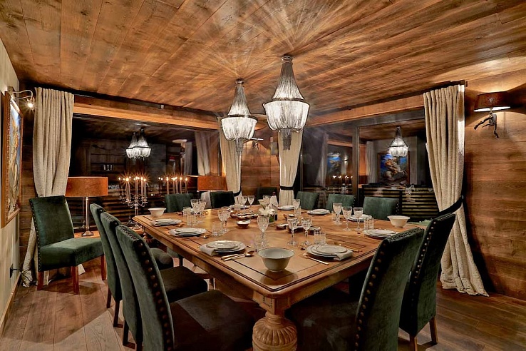 Cham320’s bold silhouette immediately captivates, promising an interior that delivers comfort and warmth. Positioned just a 3-minute drive from the Grands Montets lift and 7 minutes from La Flégère, it offers privileged proximity to Chamonix's most challenging terrain. The heart of the chalet unfolds on the main level: a soaring, open-plan living space defined by exposed dark timber beams, rich brickwork, and curated contemporary art. Plush, high-backed sofas envelop guests around a central stone fireplace, creating an intimate ambiance against the breathtaking backdrop of snow-laden peaks visible through vast floor-to-ceiling windows. Adjacent, a magnificent solid oak dining table sits beneath statement lighting, seating the entire party for convivial feasts. A discreet, fully-equipped professional kitchen allows seamless service.