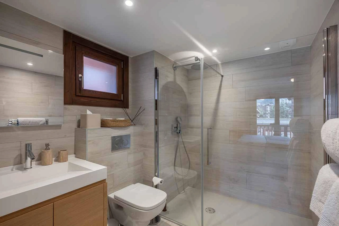 Accommodation is thoughtfully arranged across the chalet's levels, promising privacy and comfort for all. The master suite on the ground floor is a true retreat, featuring a super-king bed and direct access to a private terrace. Additional double bedrooms, each with their own en-suite shower rooms, offer balconies and spacious layouts. A dedicated bunk room, perfect for younger guests, ensures everyone has a place to unwind, with every bedroom boasting its own modern, en-suite bathroom.