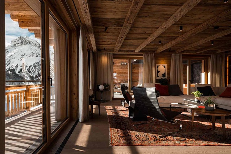 Finished in time for the 2018/19 ski season, Lech419 is located directly on the Schlosskopf slope and is a short 10-minute walk from the village center. Positioned in the heart of the picturesque ski area, the chalet offers stunning views of Lech and the surrounding peaks, with breathtaking vistas visible from its extensive terrace.