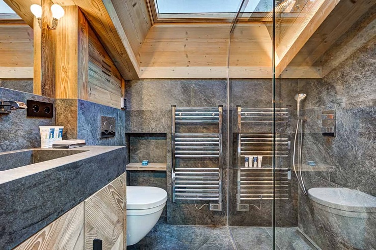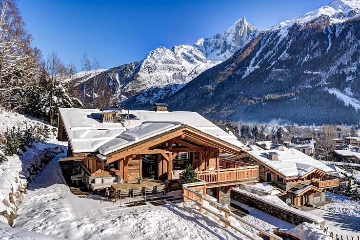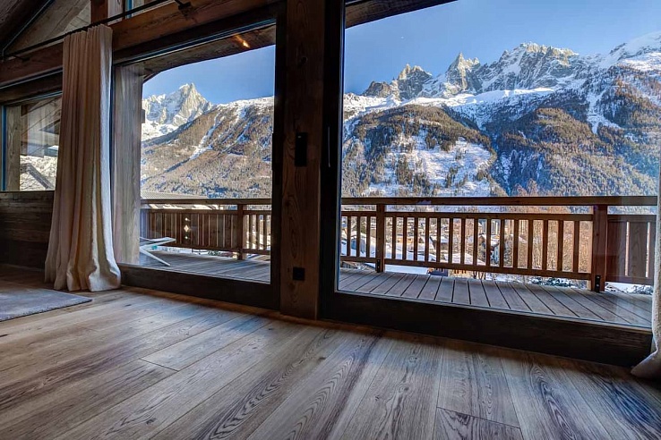 Situated at the entrance to central Chamonix within an exclusive hamlet alongside two other chalets, Azurite is just 300 meters away from the Le Savoy ski slopes and a brief walk to the nearby shops, bars, and restaurants.