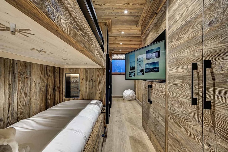 Accommodations for eight adults and eight children at Cham137 include four double bedrooms with en-suite shower rooms, a quad bunk room, and a mezzanine bedroom with four beds and an en-suite shower room.