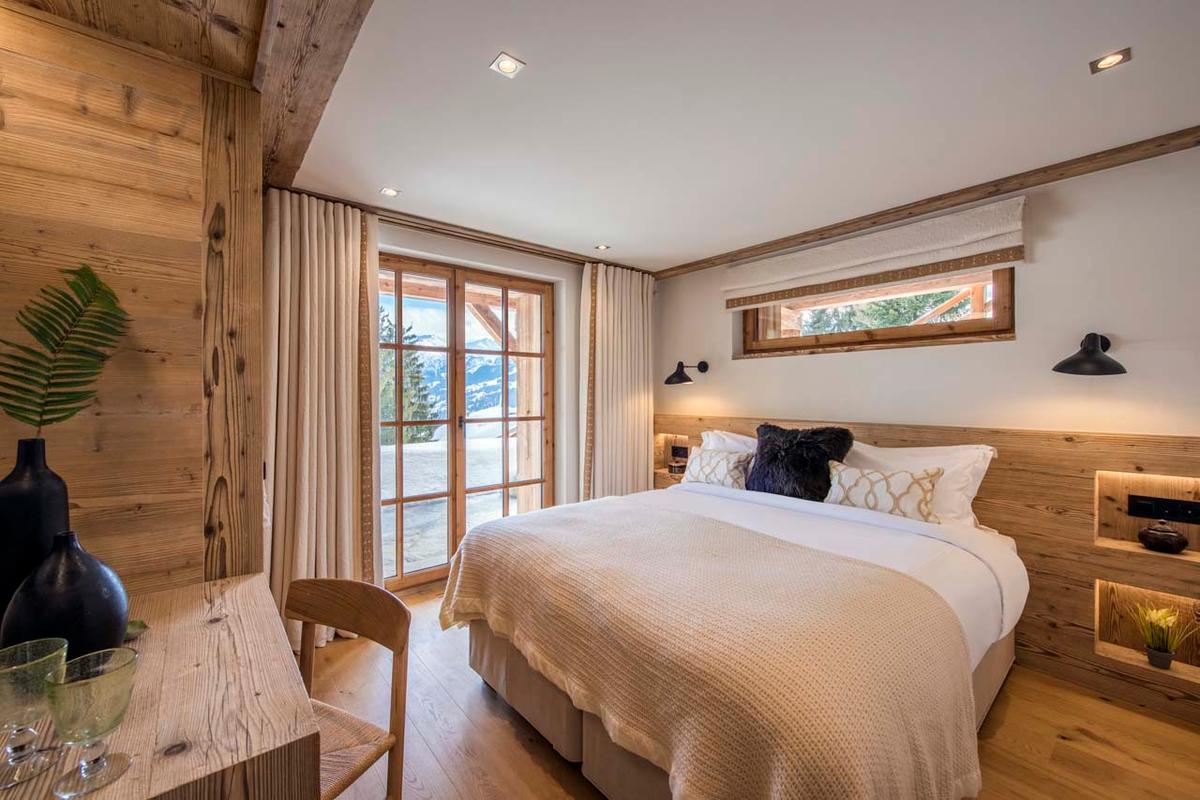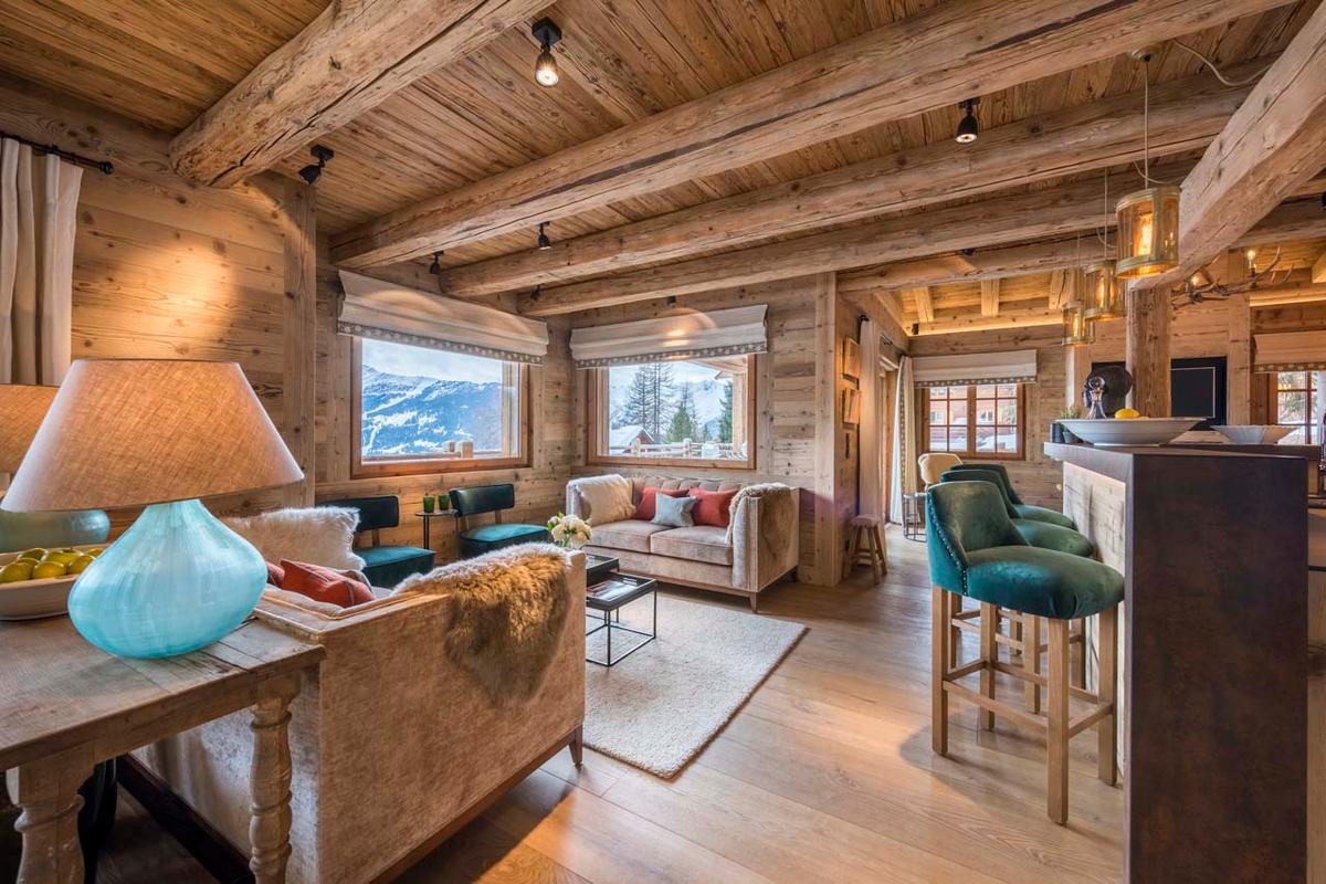 The magnificent south-facing terrace is the chalet’s social epicentre. Immerse yourself in the bubbling outdoor hot tub, champagne flute in hand, soaking in the alpine panorama as the sun dips. Gather around the inviting fire pit, sharing tales of the day's adventures under the stars. Inside, relaxation takes multiple forms: sink into the L-shaped sofa by the roaring fireplace, discover a cosy reading nook, or challenge companions in the secondary lounge. The state-of-the-art Bose sound system sets the mood, while a concealed large-screen TV with Apple TV and Netflix offers evening entertainment. The adjacent, beautifully lit solid wood bar is an entertainer's dream, inspiring crafted cocktails.