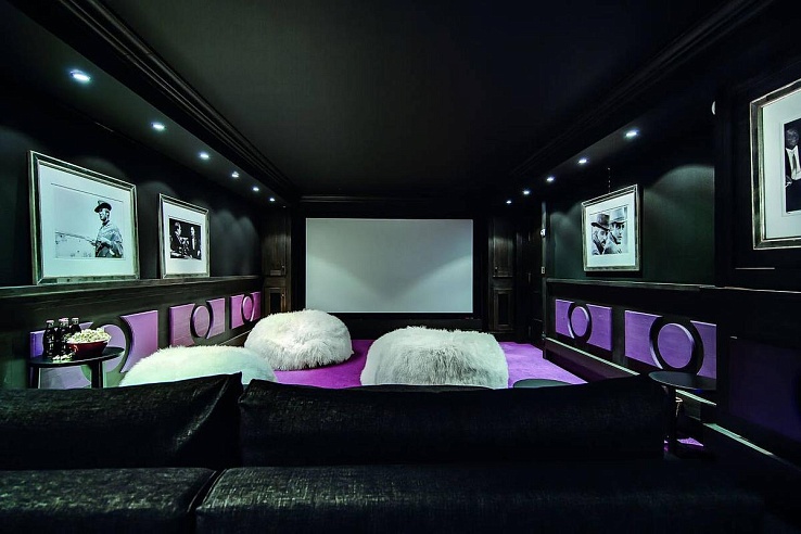 The ground level features another living area designed for entertainment, complete with a piano, bar, fireplace, games room with a pool table, cinema room, and a dedicated playroom for children. A professional chef's kitchen with a food lift and a guest WC complete the club-like ambiance.