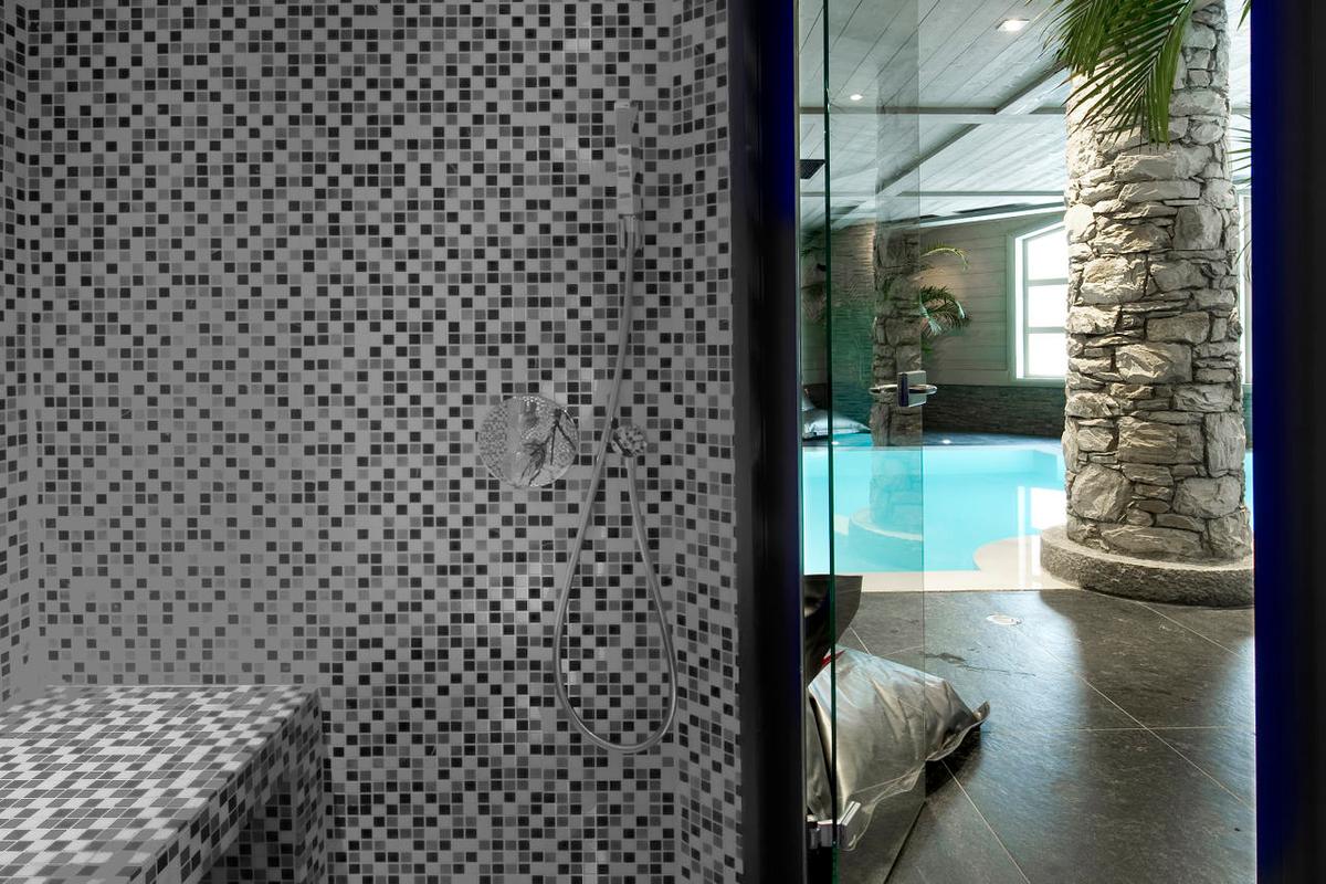 The ground floor unveils a magnificent indoor swimming pool with a rejuvenating jet stream and a hammam, constituting a chic wellness haven. For entertainment, there's a lavish cinema room with a projector screen and a PlayStation. The five double/twin bedrooms, each with designer en suite bathrooms, grace the first and second floors, showcasing individualized decor with elegant soft furnishings and natural materials for a refined yet inviting atmosphere.