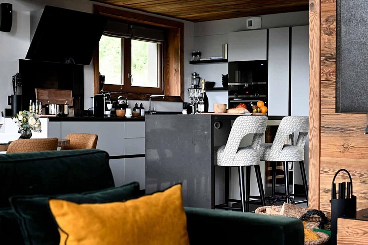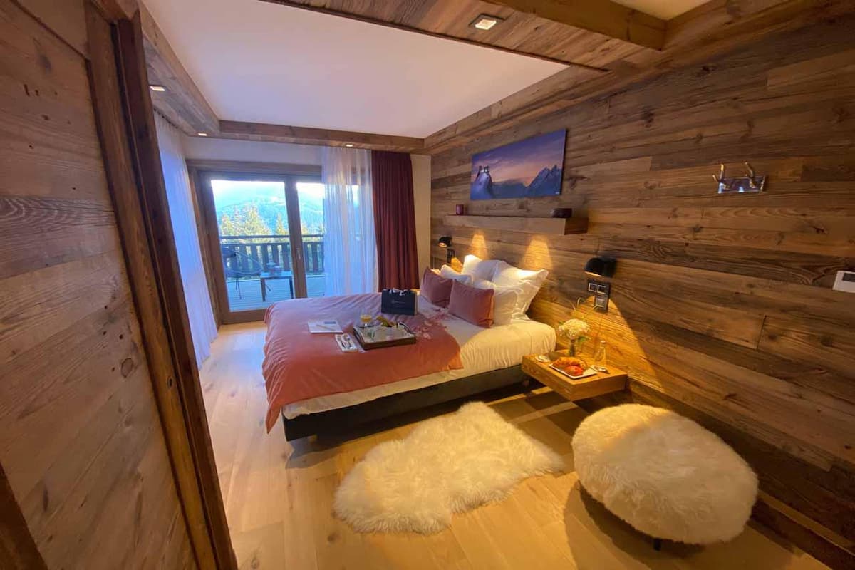 Spanning five flawlessly curated floors, Cour323 commands panoramic valley vistas from its perch in Courchevel Moriond. Accommodating 12 guests across six en-suite bedrooms (four convertible to twins), the chalet balances grandeur with intimacy. Its pièce de résistance: a double-height living pavilion crowned by floor-to-ceiling windows, dual charcoal velvet lounges, and a basalt fireplace. French doors unveil a cedar hot tub terrace, while a gourmet kitchen—anchored by a marble breakfast bar—flows into a 10-seat oak dining gallery.