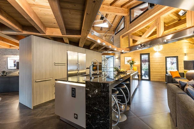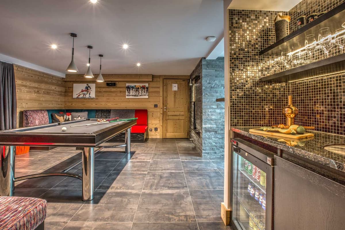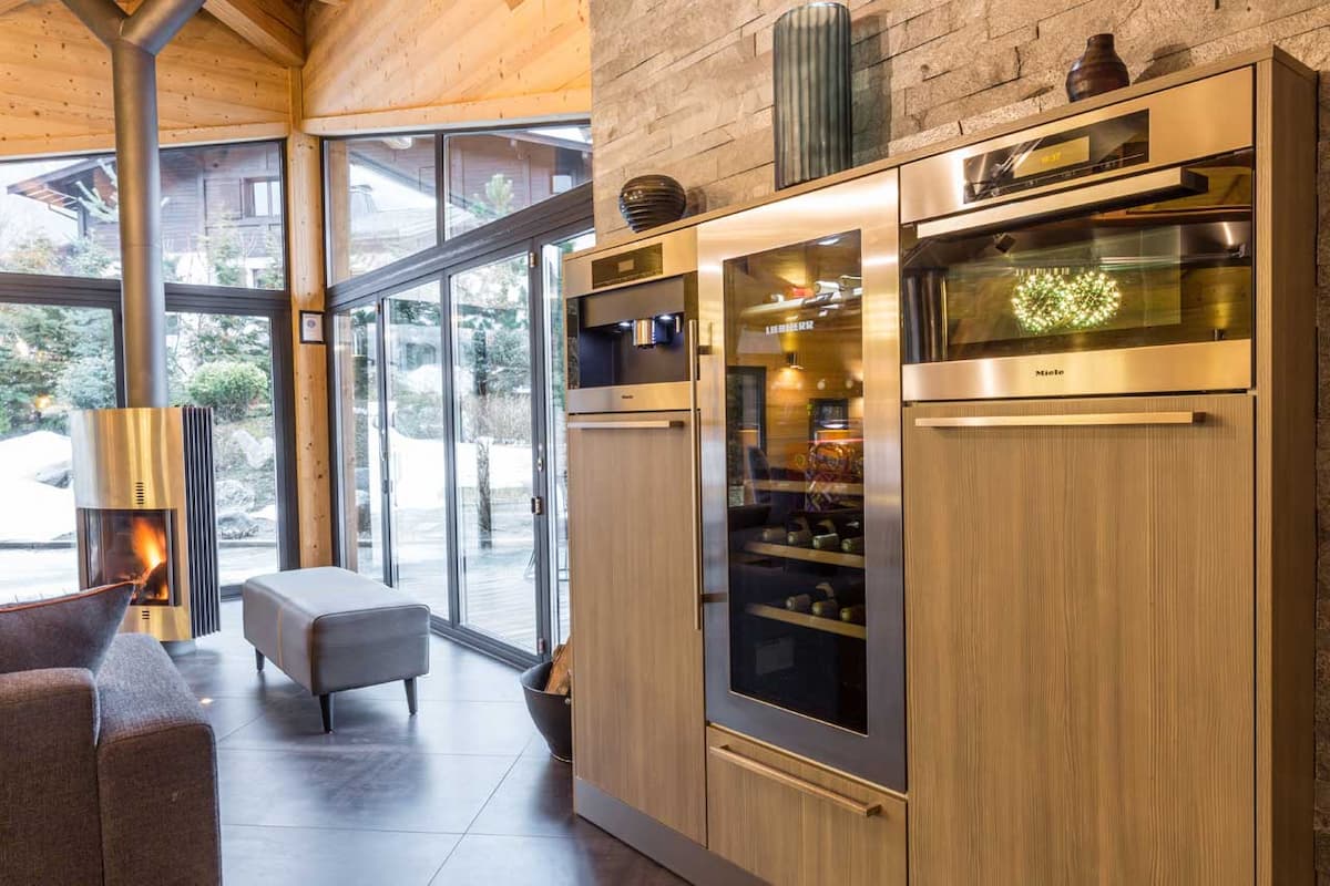 Practical luxuries ensure seamless alpine living: a dedicated ski room with boot warmers and racks, convenient laundry facilities, and private parking. Eco-conscious underfloor heating provides silent comfort throughout.