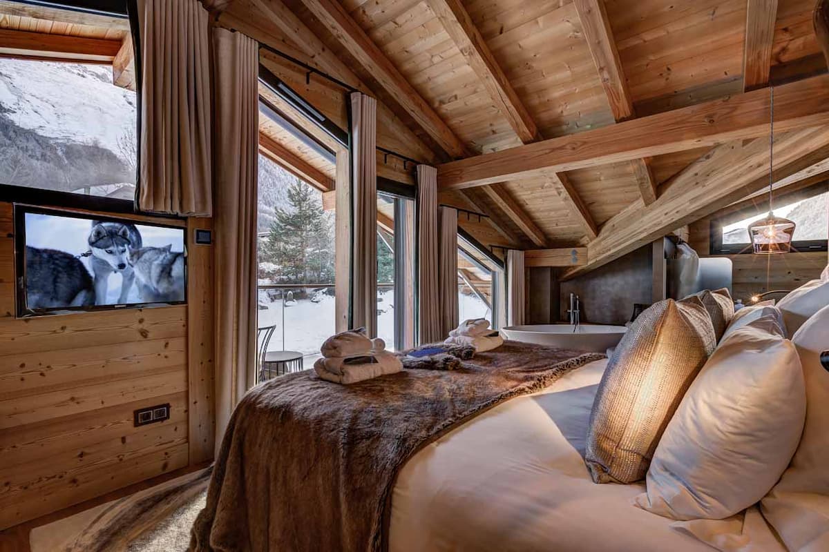 Spread across three meticulously designed levels, Cham318 stands as a beacon of modern alpine luxury. Its heart is a breathtaking double-height living space, bathed in light through floor-to-ceiling south-facing windows framing the iconic Mont Blanc massif. This open-plan area features sophisticated dual lounge zones, a statement bar, a 12-seater dining area, and a state-of-the-art kitchen centered around a unique 360-degree rotating fireplace – perfect for intimate après-ski gatherings or grand entertaining. Accommodating up to 10 discerning guests, the chalet boasts five exquisitely appointed en-suite bedrooms, each a unique design statement. Step outside onto expansive terraces to immerse yourself in the mountain panorama or unwind in the covered 12m pool or 8-person hot tub.