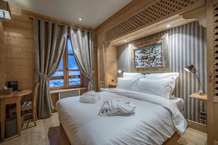 Nestled within the exclusive enclave of Les Carats, Val-200 is just 50 meters from the Olympic Bellevarde Piste. Offering a secluded haven in proximity to the slopes, this chalet showcases elegant architecture, featuring exposed beams and local pine wood paneling. Spanning three floors, this retreat comfortably accommodates six adults and four children across four bedrooms. Val-200 can be combined with its neighboring chalet (Cristal A) for larger groups.