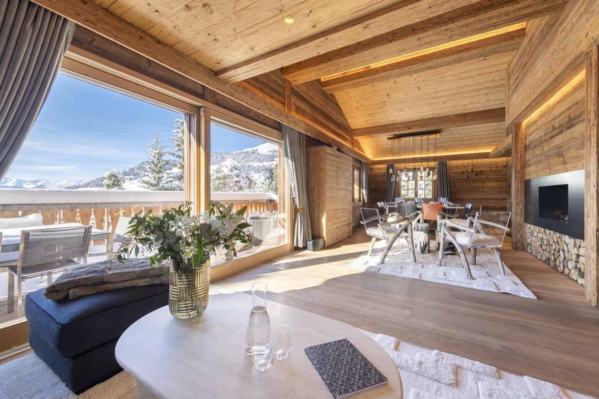 Verb186, a sublime retreat of elegance, sprawls across 300m² in Verbier, offering accommodation for 10 guests across its 5 bedrooms. The interior seamlessly blends modern, chic furniture with traditional wooden elements over three levels, providing the ultimate alpine sanctuary for a luxurious ski holiday.