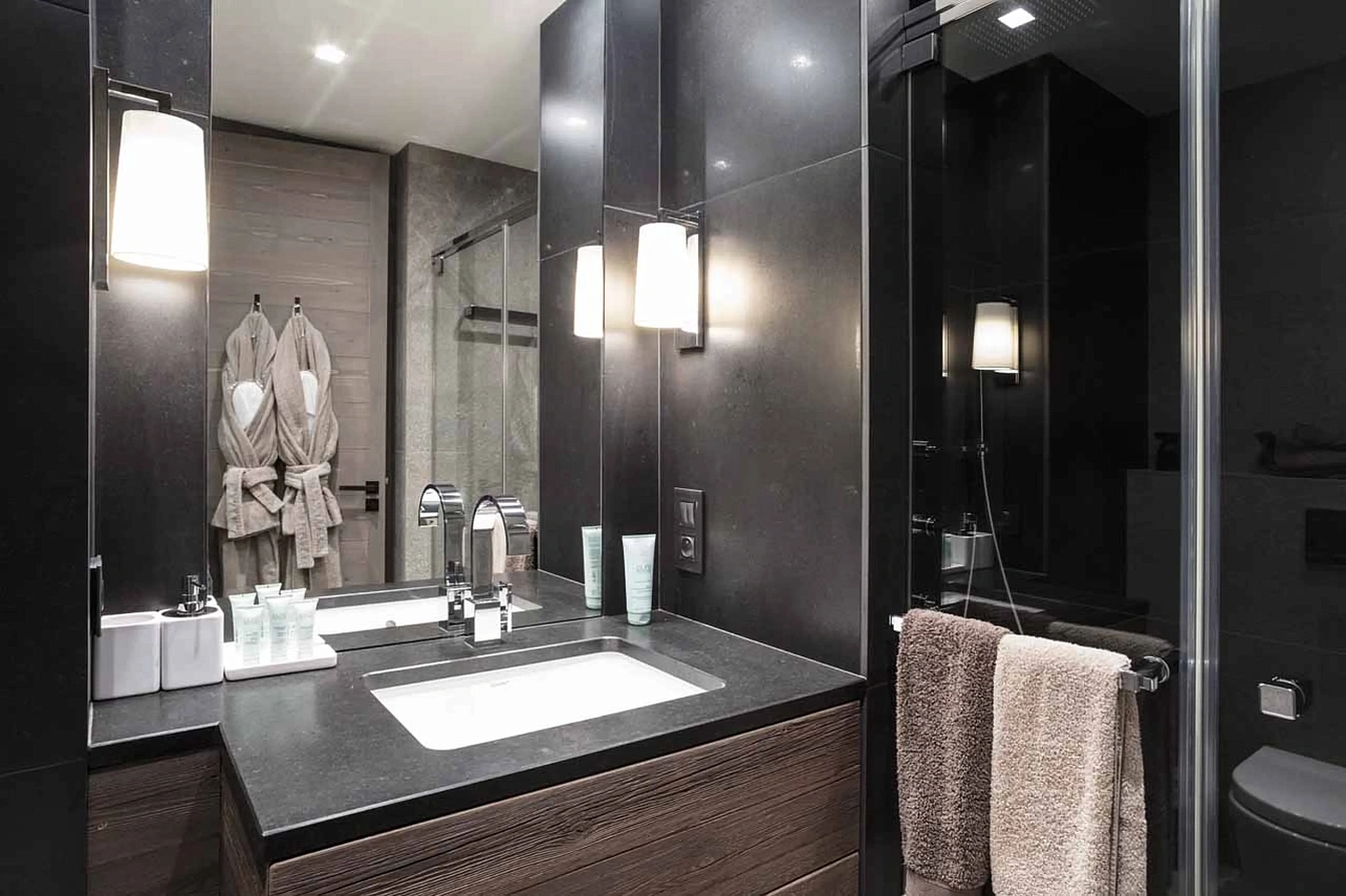 Nestled in a tranquil residential area, Mege491 places you just a five-minute walk from the Rochebrune cable car. It accommodates twelve guests across six en-suite bedrooms. The heart of the home is the top-floor living area, a decidedly elegant space bathed in natural light from large windows, featuring a grand fireplace, plush velvet sofas, and access to a huge balcony for unforgettable sunset views over the valley. A generous dining table sets the scene for memorable meals, served from a separate, fully-equipped kitchen.