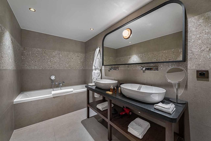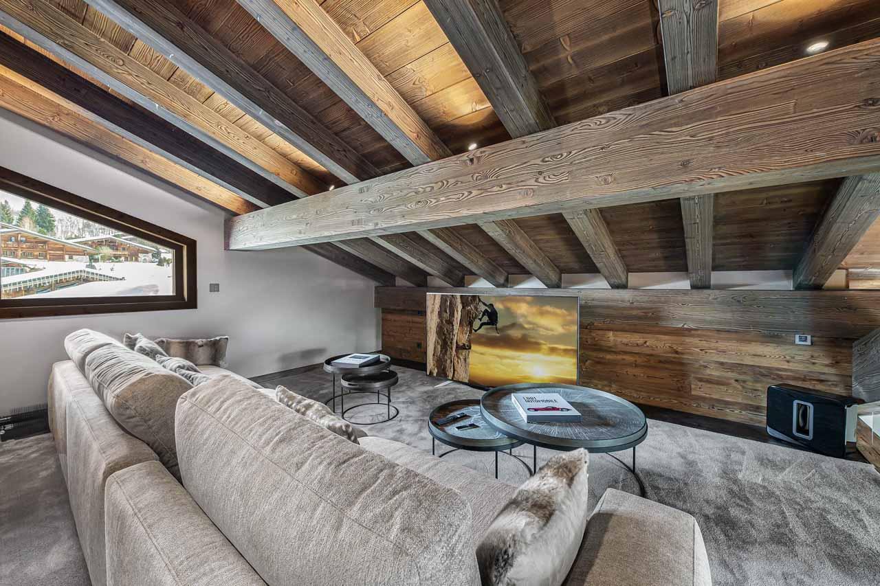 Mege462is a tri-level, state-of-the-art chalet constructed in 2019, offering a flawless blend of bold alpine architecture and a fresh, vibrant interior. The top floor unveils a magnificent open-plan living and dining area, where monumental timber beams frame the space. Plush sofas surround a crackling wood-burning fireplace, while vast windows and a wrap-around balcony provide commanding views of the Rochebrune mountainside. The chalet accommodates 10 guests in five elegant en-suite bedrooms and features a dedicated cinema mezzanine, a fully-equipped bar, and an integrated SONOS sound system throughout.