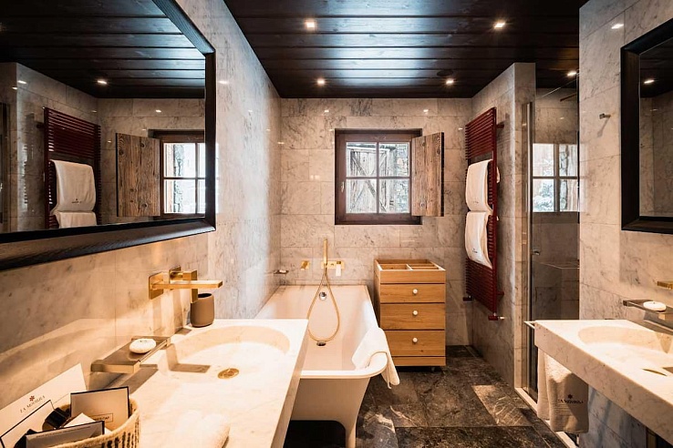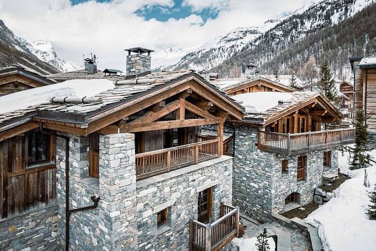 Linked to La Mourra hotel, the chalet is situated in Val d'Isère's Old Town, just a short stroll away from the town center and a 2-minute drive from the ski lifts.