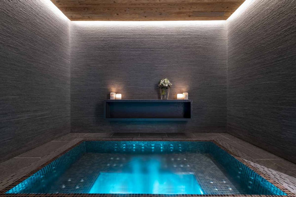 Upon entering, a grand foyer leads to the communal hub on the ground level, where guests can unwind in the central lounge, relish drinks at the bar, or savor moments in the refined cigar lounge. Conveniently, your dedicated ski storage awaits here, ensuring a seamless transition from the slopes to the chalet.
