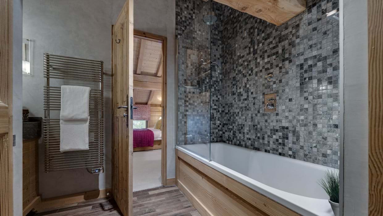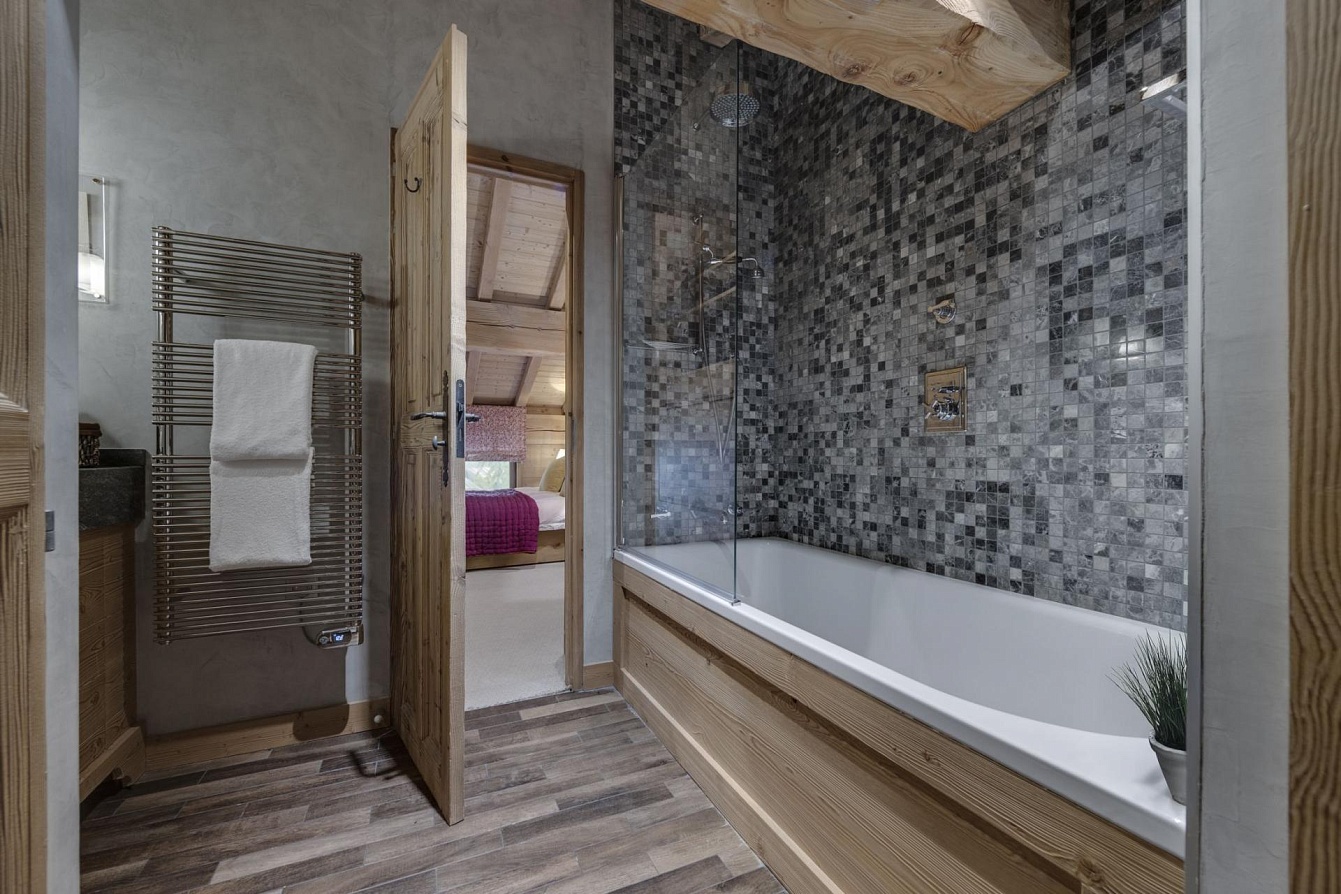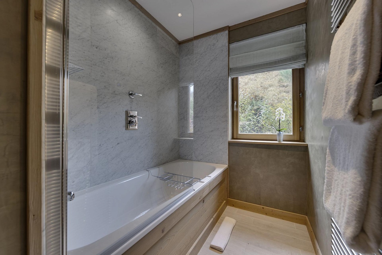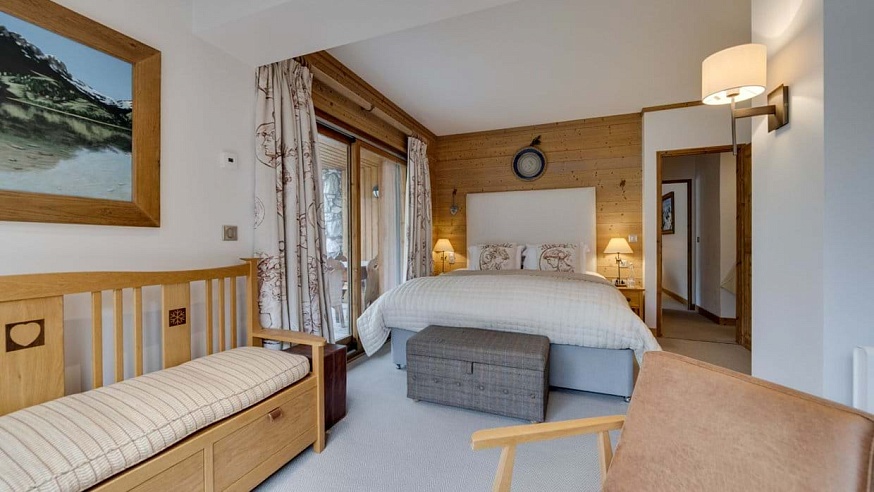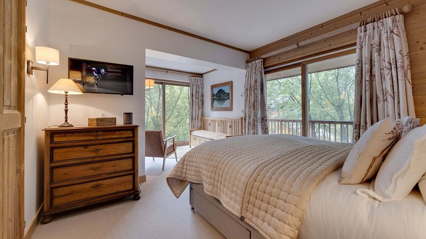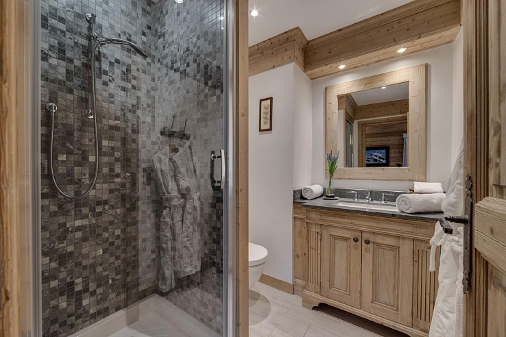 The master bedroom boasts a super king-size bed, an en-suite bathroom with an enlarged tub, and access to a west-facing balcony. The four additional double bedrooms, each featuring a king-size bed, wall-to-wall carpeting, and an en-suite bathroom or shower room, offer unique views of the majestic mountain scenery that surrounds Val d’Isere.