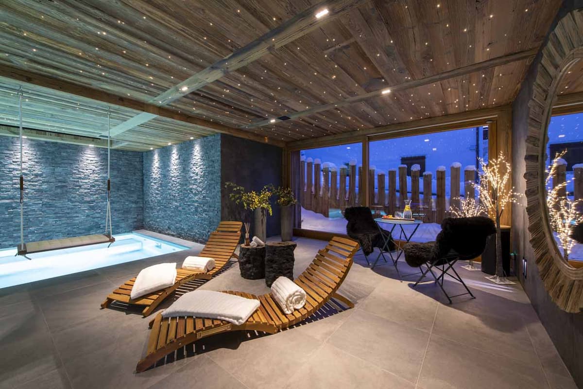 Grande Maison's highlight is its impressive spa centered around an 'L' shaped swimming pool featuring a counter-current, massage zones, and fountains. Guests can also enjoy indoor and outdoor hot tubs, a barrel sauna, a spacious steam room, and a raised studio perfect for Pilates or yoga. A dedicated massage room offers a variety of treatments, while the Owner's Lodge boasts a private roof terrace with a Jacuzzi.