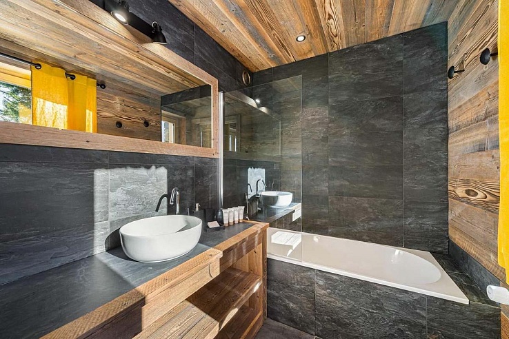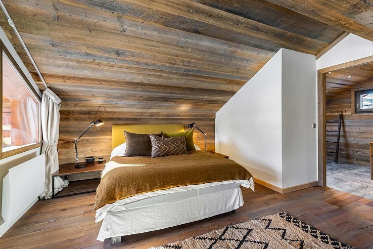 Spread over four floors with 400 sqm of living space, the chalet accommodates eight adults and four children. It features four double en-suite bedrooms and a quad room with four single beds, ideal for children. The master suite, offering privacy, is situated on the top floor with a balcony boasting stunning views of the Meribel Valley.