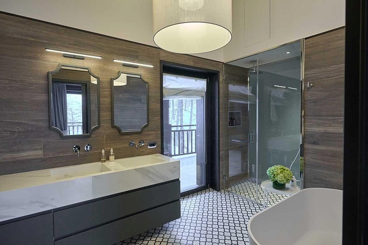 Nestled in a serene forest beside a stream, this four-floor retreat accommodates up to 14 guests across six en-suite bedrooms, offering a seamless blend of alpine charm and modern sophistication.