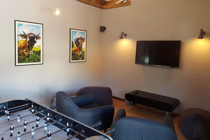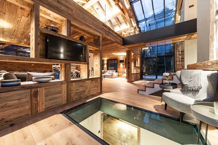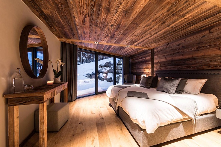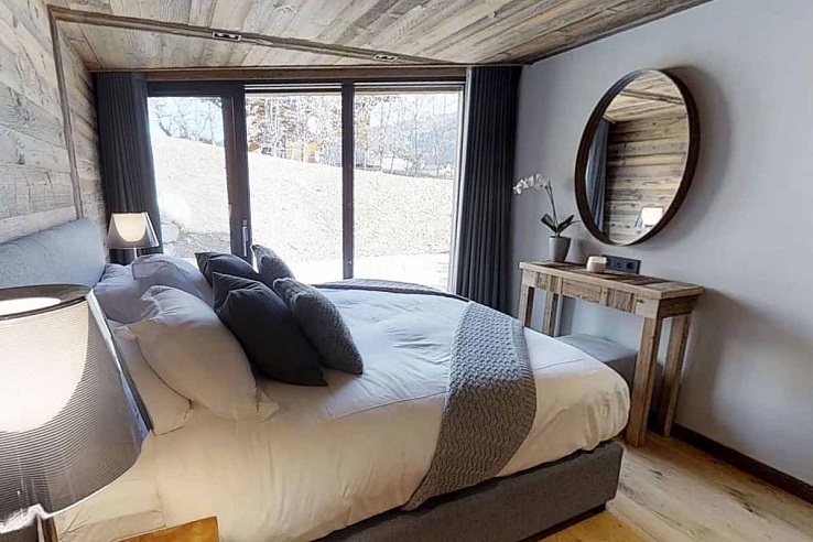 Morz113, an expansive property nestled into the mountainside, is just a short drive from Morzine and offers 680 m² of living space. Skilled skiers can access the chalet from the Morzine side of the valley by skiing a short stretch of gentle off-piste terrain. One side of the chalet features extensive glass construction, providing stunning views of the mountains. With six en-suite bedrooms, Morz113 comfortably accommodates ten adults and four children.