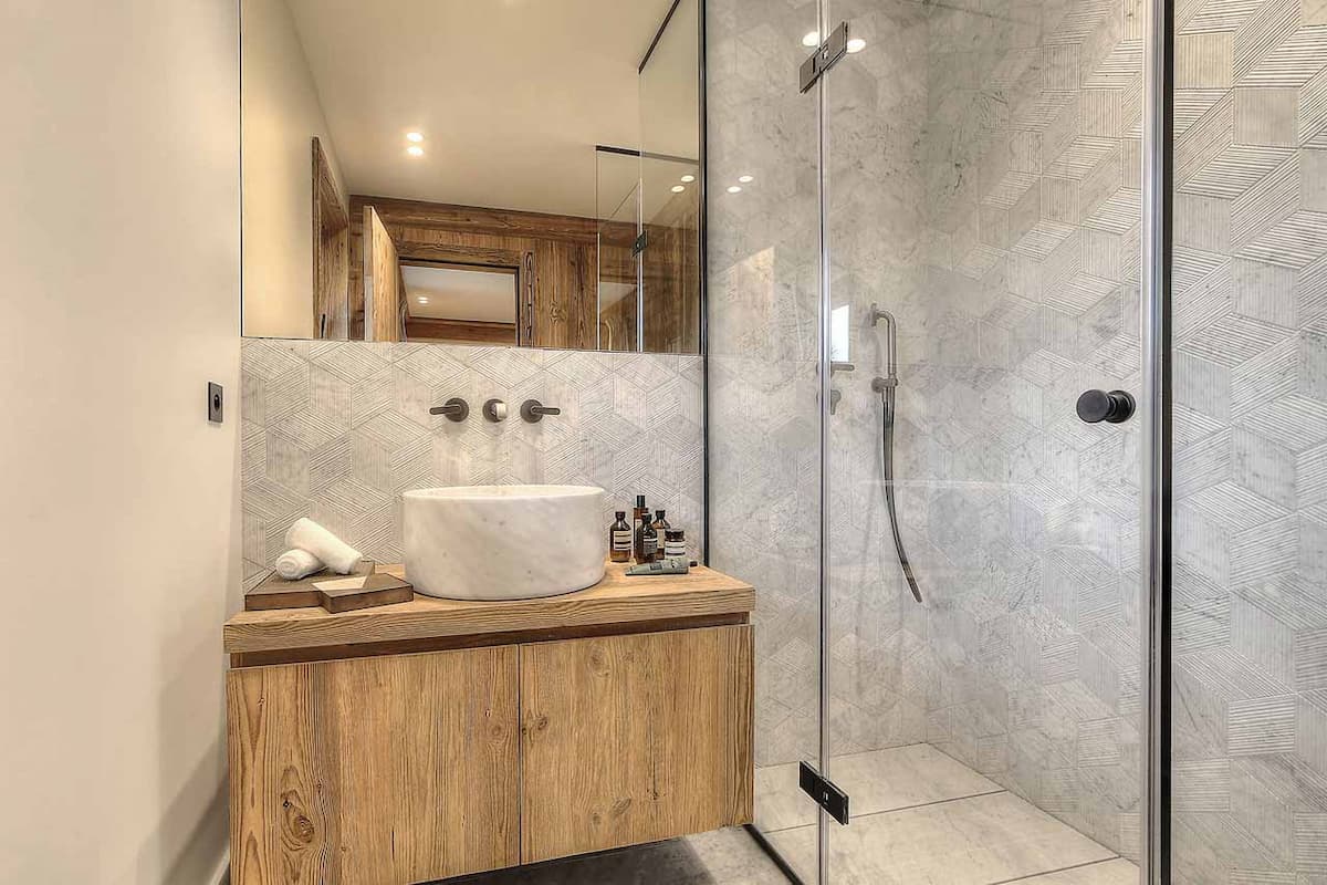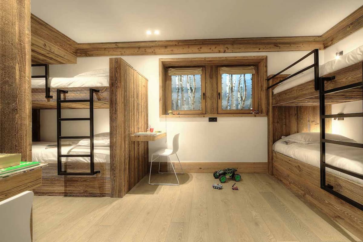 Zana's discerning touch extends to six serene en-suite bedrooms, each a retreat. Two expansive Master Suites reign supreme: one on the second floor boasts a vast private terrace bathing in alpine light, while the first-floor Master enjoys lofty ceilings and terrace access, transforming into a luminous haven. Three further double bedrooms, adorned with the same elegant materials and designer furnishings, offer tranquil repose, each with luxurious en-suite bathrooms. The dedicated children's realm on the ground floor features a playful yet chic six-bed dormitory with its own en-suite, ensuring younger guests feel equally pampered.
