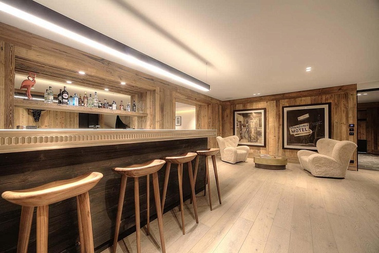Dedicate your après-ski to profound relaxation in the lower-level spa sanctuary: immerse in the bubbling Jacuzzi, detoxify in the aromatic hammam, or surrender to bespoke treatments in the private massage room. Adjacent, a fully-equipped Technogym fitness room caters to revitalizing movement. Descend further to discover Mege315's vibrant social heart: a sophisticated bar beckons for crafted cocktails, leading to an opulent Lutexa Geneva home cinema for immersive evenings and a billiards room centred around a prestigious Brunswick table – the perfect backdrop for convivial nights. Generous terraces on multiple levels invite alfresco contemplation of Megève's majestic landscapes.