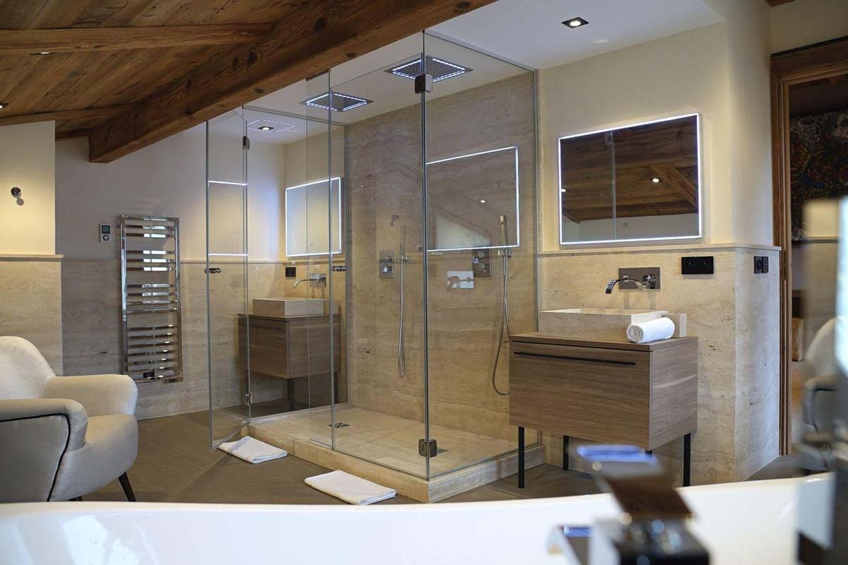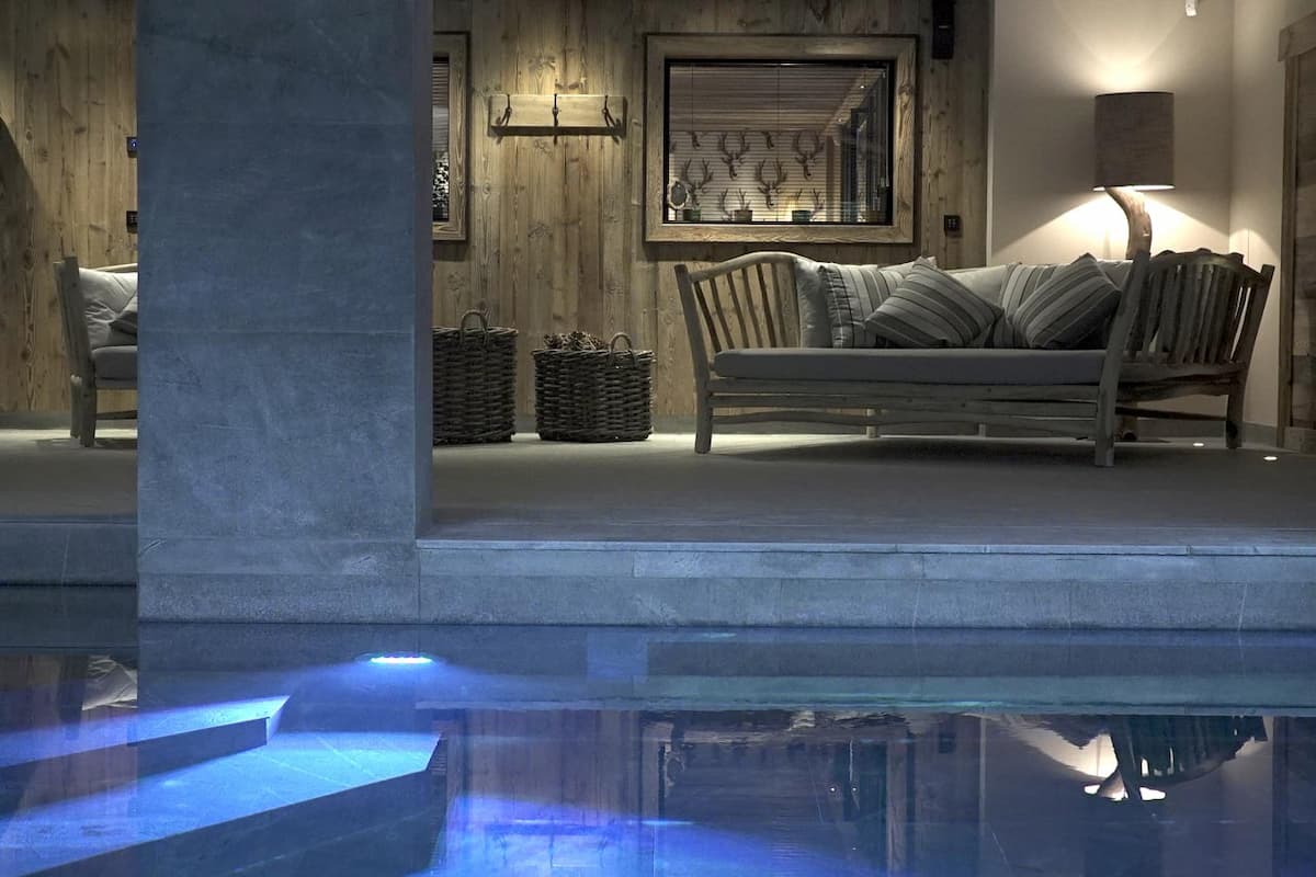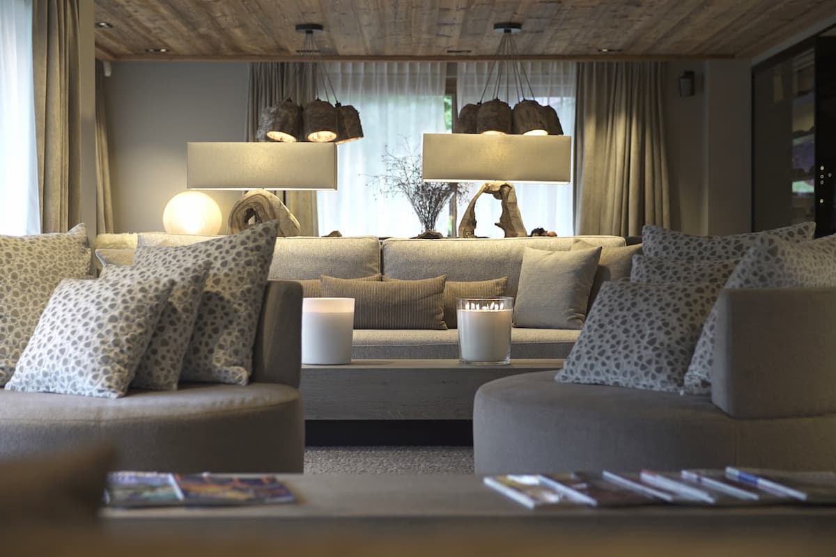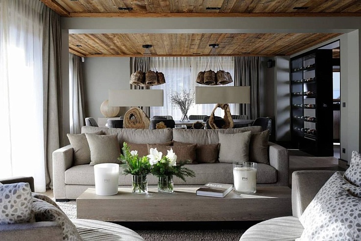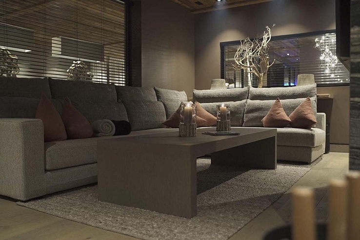 Шале с панорамными окнами и террасами состоит из трех этажей. На площади 500 м² вас ждет шесть великолепных сьютов для 12 человек, череда лаунжей и спа-зона с бассейном. Элегантный интерьер шале выполнен в светлых, приглушенных тонах. Отделка тонированным деревом, стильная обстановка и современная техника дополнены дизайнерскими светильниками и оригинальным декором.