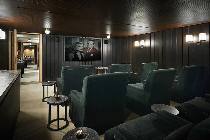 The lowest level houses a magnificent private spa with a Jacuzzi, sauna, and couples treatment room. This floor also includes a ski room with direct piste access, a relaxation area, and a state-of-the-art cinema room with On-demand streaming. Guests can enjoy the services of the neighboring L’Apogée Courchevel hotel, including its fine French and Japanese restaurants, stylish bars, cigar lounge, boutiques, indoor heated pool, and spa. A private conveyor belt conveniently connects the chalet’s ski-in/ski-out facility.