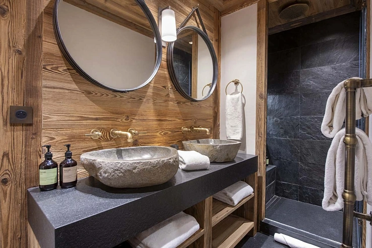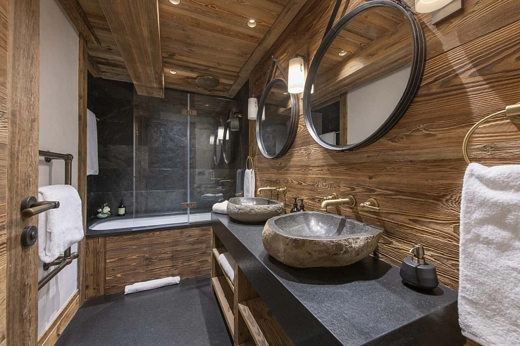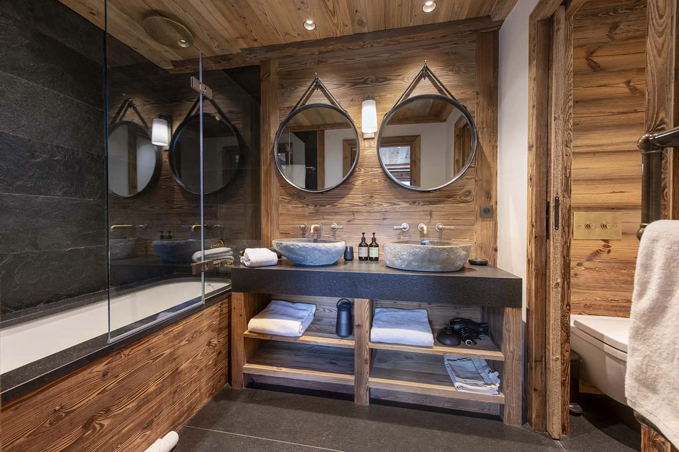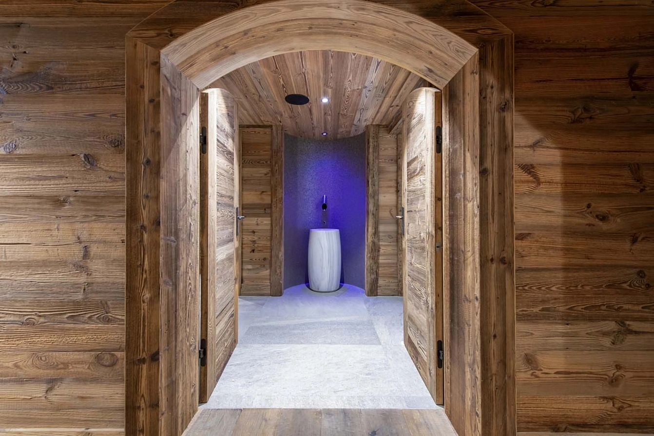 Meri467 is a sublime 550m² haven of alpine luxury, perfectly positioned on the Maudit piste for immediate ski access. Spread over four meticulously designed floors, it accommodates up to 12 guests in six elegant en-suite bedrooms. The heart of the chalet is its voluminous first-floor living area, where a double-height lounge with a monumental stone fireplace and sumptuous seating flows onto a vast, sun-drenched terrace. An open-plan dining area with a bespoke solid timber table seats ten, ideal for convivial gatherings, while a second lounge and a state-of-the-art cinema room provide spaces for every mood. The aesthetic is a masterful blend of traditional Savoyard materials—reclaimed wood, exposed stone—and sleek, contemporary design.