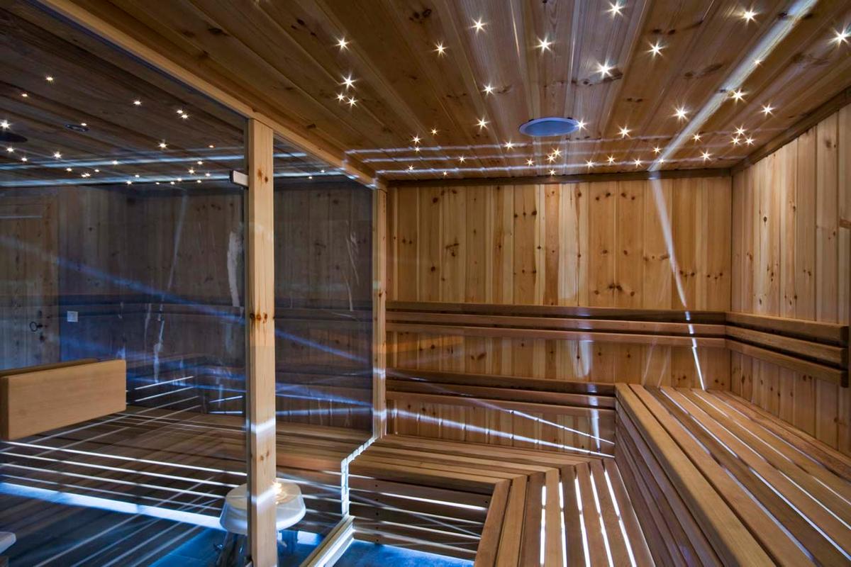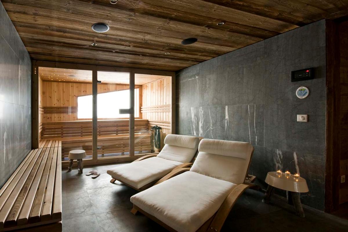 Val-354is designed for ultimate relaxation after a day on the slopes. The upper deck boasts an 8-person hot tub and a sound system, while the ground floor houses a dedicated wellness area complete with a sauna, steam room, and massage room. Wine enthusiasts will appreciate the extensive wine cave, stocked with a diverse collection of vintages for tasting.