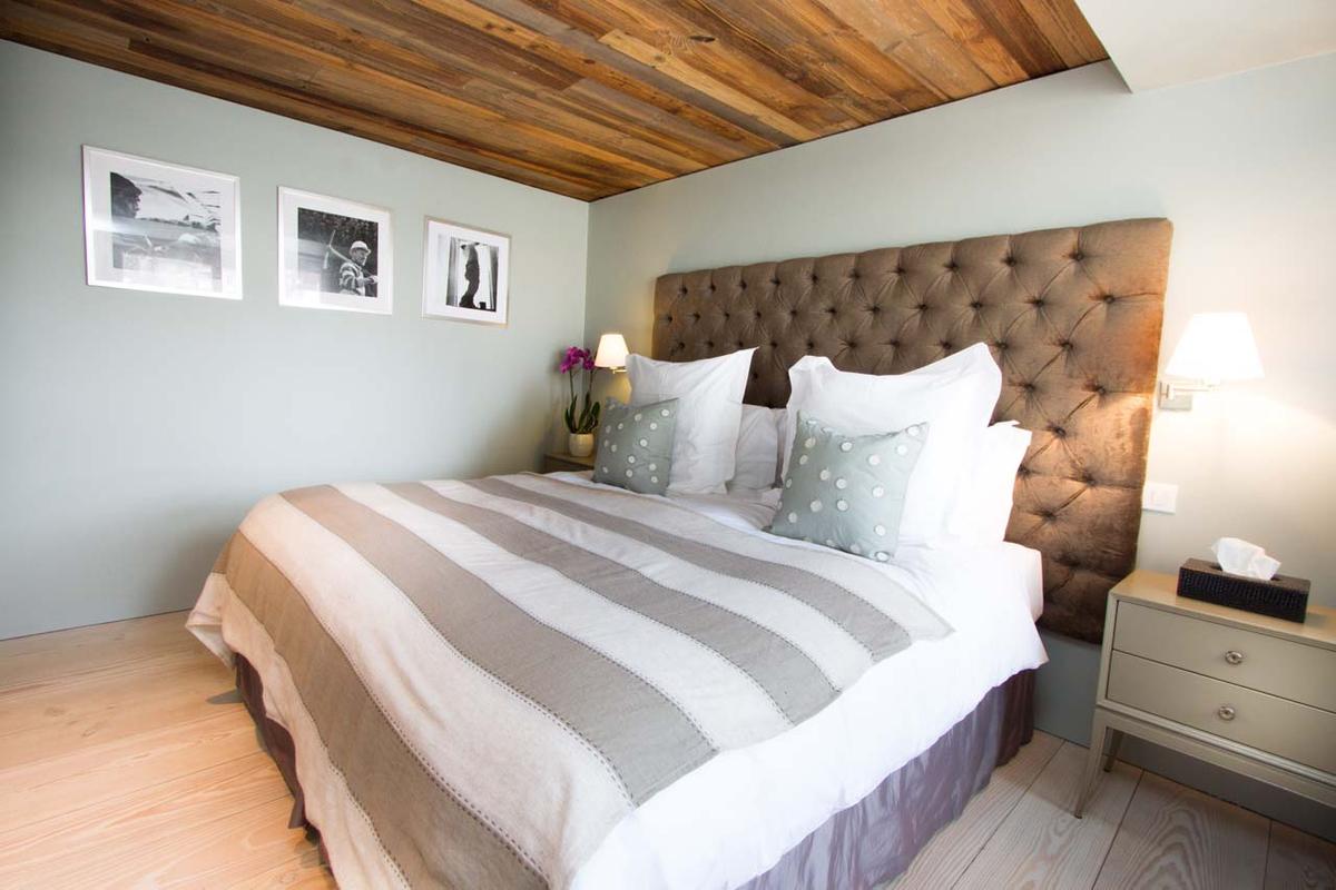 The chalet’s six en-suite bedrooms are spread across the second and third floors. Each room features a twin/double bed, a flat-screen TV, and an en-suite bathroom crafted with local marble and reclaimed wood, complete with both a shower and a bathtub.