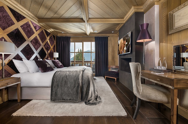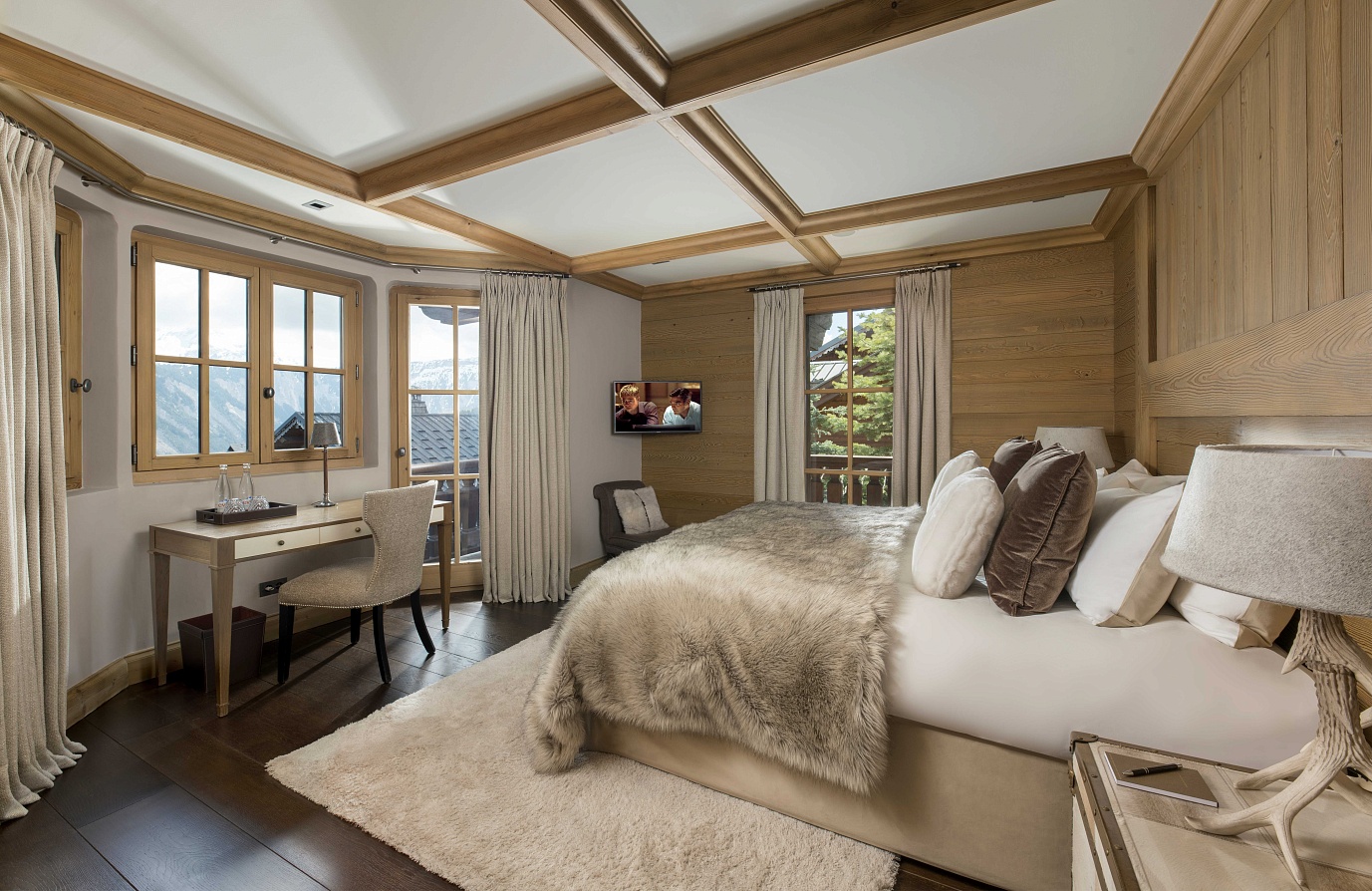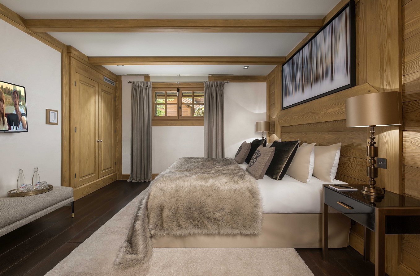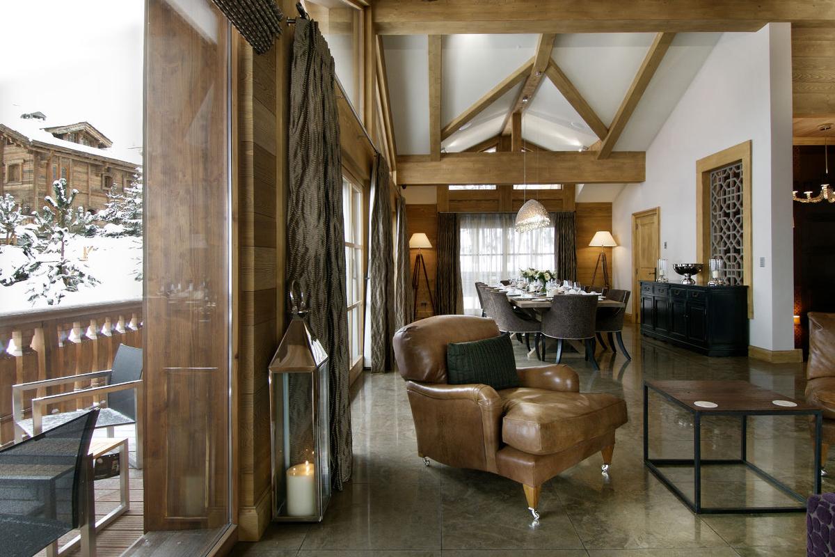 Crafted with meticulous attention, the timber adorning the chalet emanates a warm Alpine ambiance, a perfect match for this distinctive mountain hideaway. A striking wrought-iron staircase, envisioned by a renowned artisan atelier in Paris, serves as a grand entrance to the main living room.
