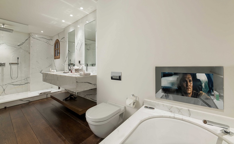 In a departure from more formal settings, the inviting cinema room beckons with sound-proofed walls adorned in black leather and plush grey chairs, ensuring the ultimate cinematic experience. The six double bedrooms, each with spacious en-suite bathrooms crafted from various natural stones, accommodate twelve guests in unparalleled comfort. Notably, five of these bedrooms provide direct access to a balcony or the terrace, allowing guests to immerse themselves in the stunning mountain surroundings. Cour80 stands as a quintessential haven, seamlessly blending luxury with the natural beauty of its Alpine surroundings.