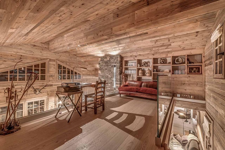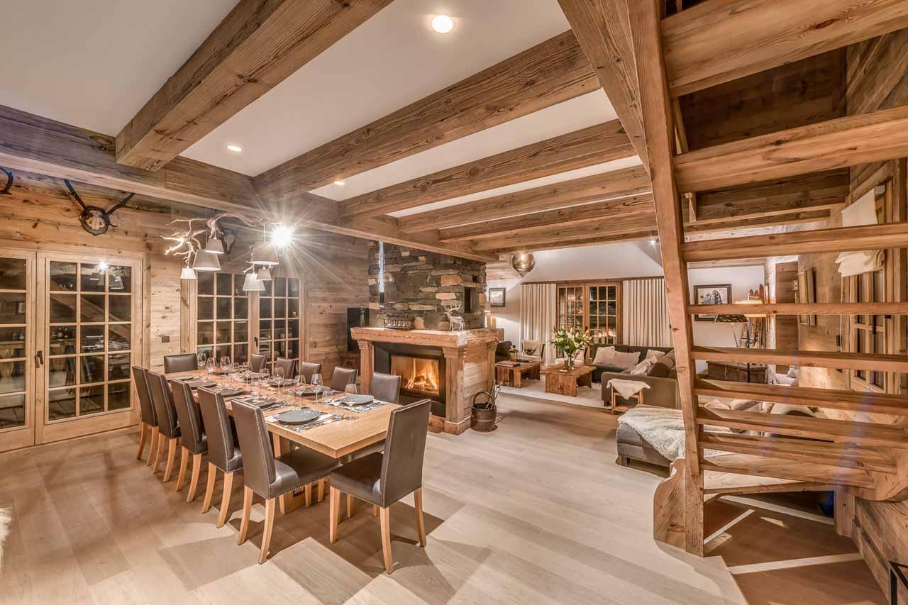 Undergoing an extensive €1 million renovation in 2019, the chalet has been expanded and elevated, with a notable enhancement to its piste-facing facade. A standout feature of this renovation is the newly spacious double-height open-plan living and dining area. Adorned with comfortable sofas, a welcoming fireplace, and a stylish bar, the living space beckons guests to unwind in complete relaxation. The pervasive use of weathered wood contributes to the chalet's authentic Alpine ambiance, complemented by intriguing artwork that adds to its overall stylish decor. The addition of a state-of-the-art glass-enclosed kitchen fulfils the dreams of any aspiring chef.